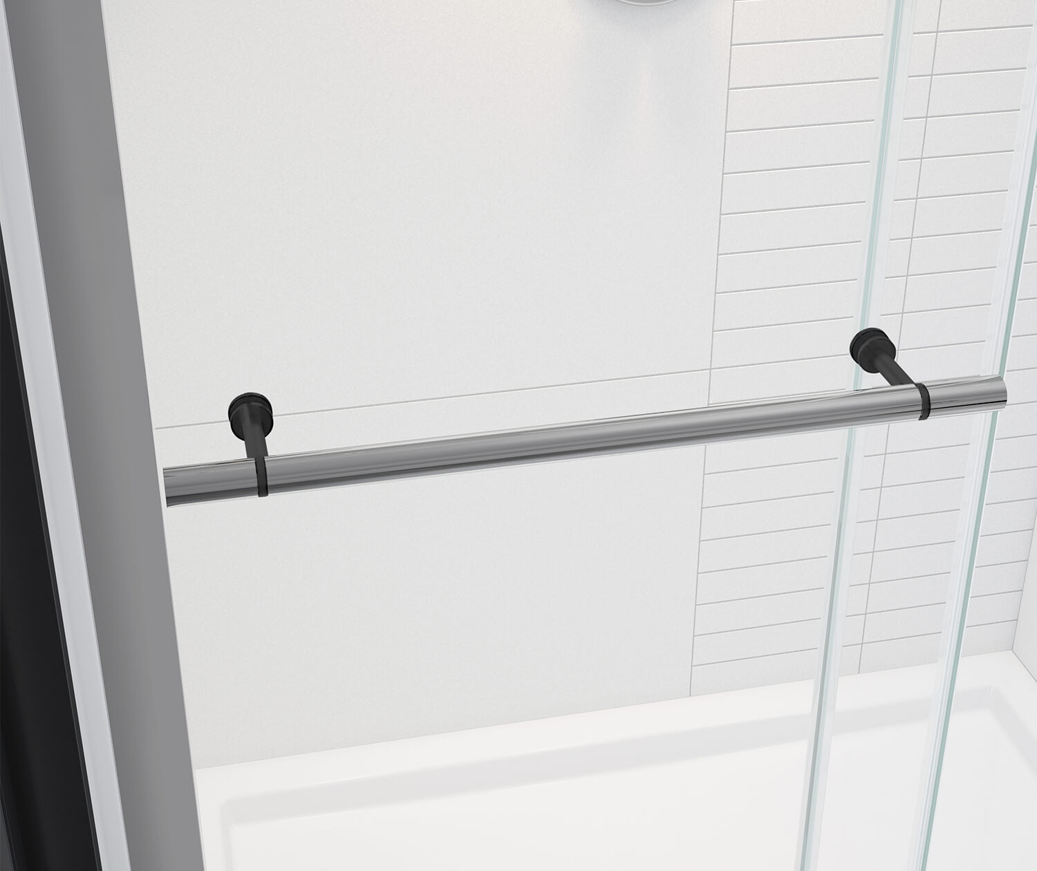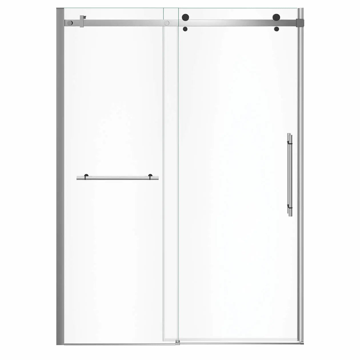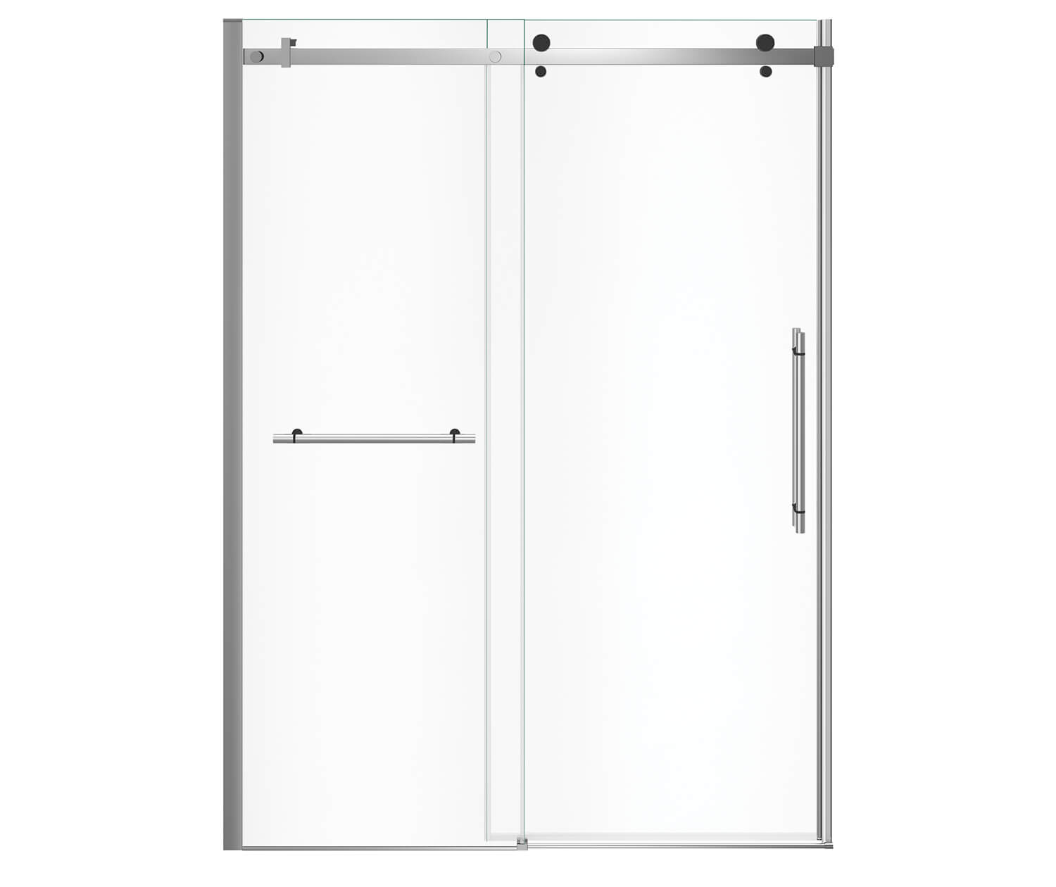 Vela 56 ½-59 x 78 ¾ in. 8mm Sliding Shower Door with Towel Bar for Alcove Installation with Clear glass in Chrome and Matte Black