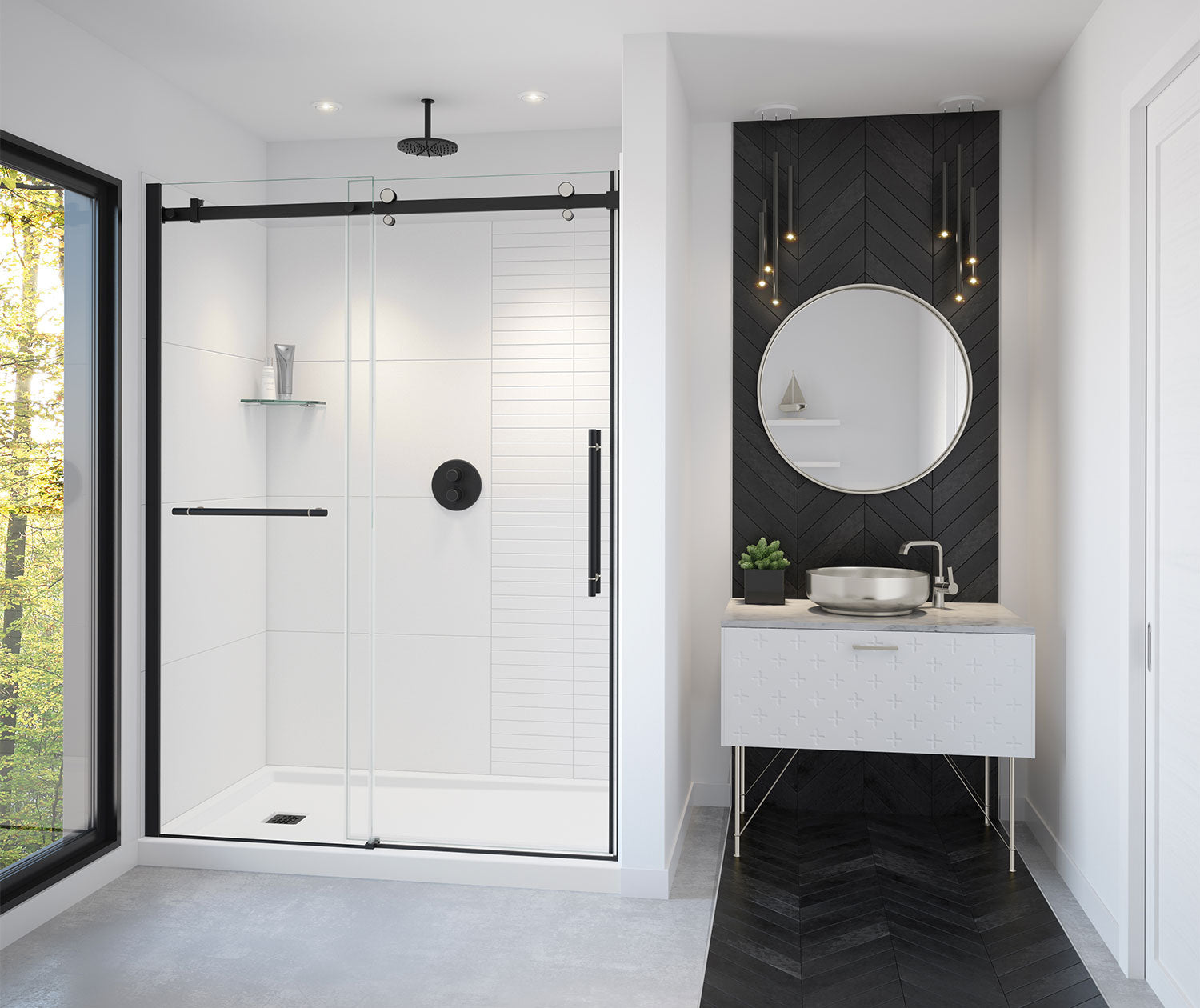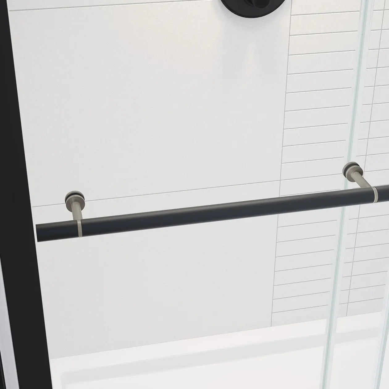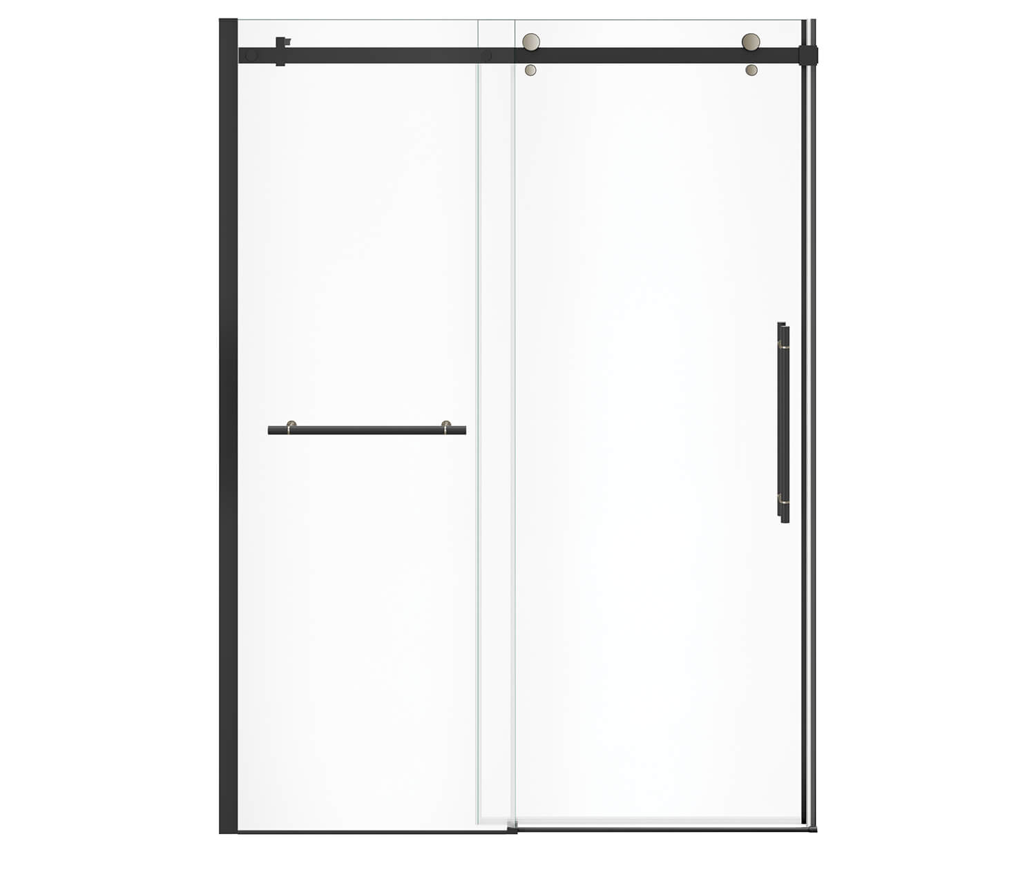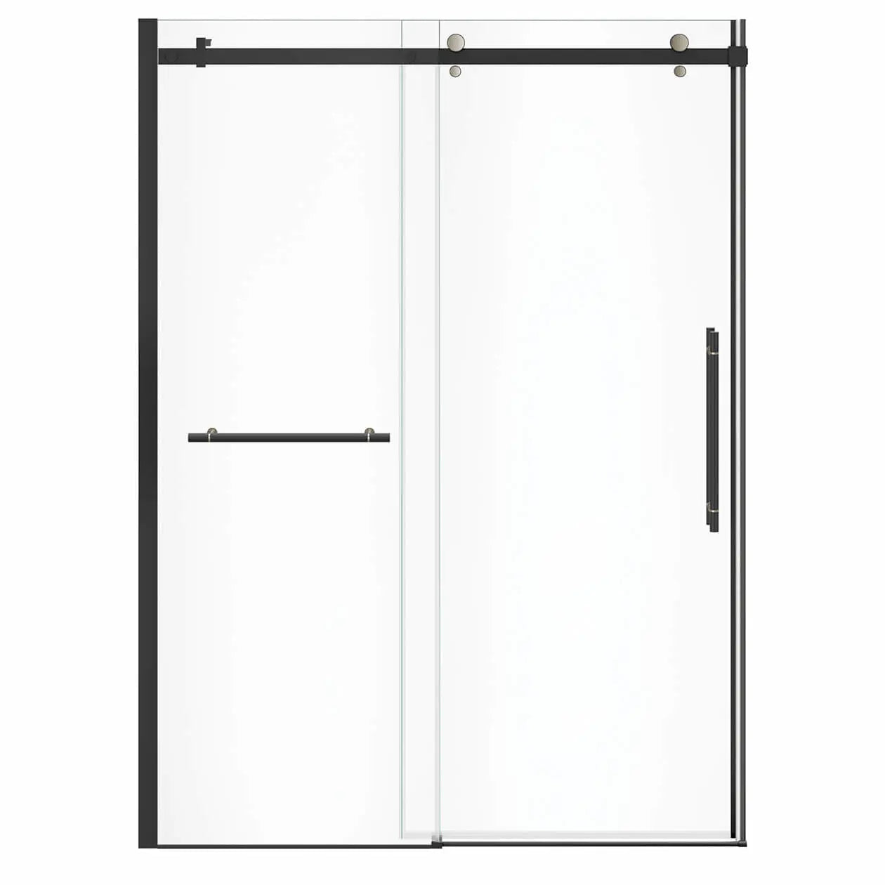 Vela 56 ½-59 x 78 ¾ in. 8mm Sliding Shower Door with Towel Bar for Alcove Installation with Clear glass in Matte Black and Brushed Nickel