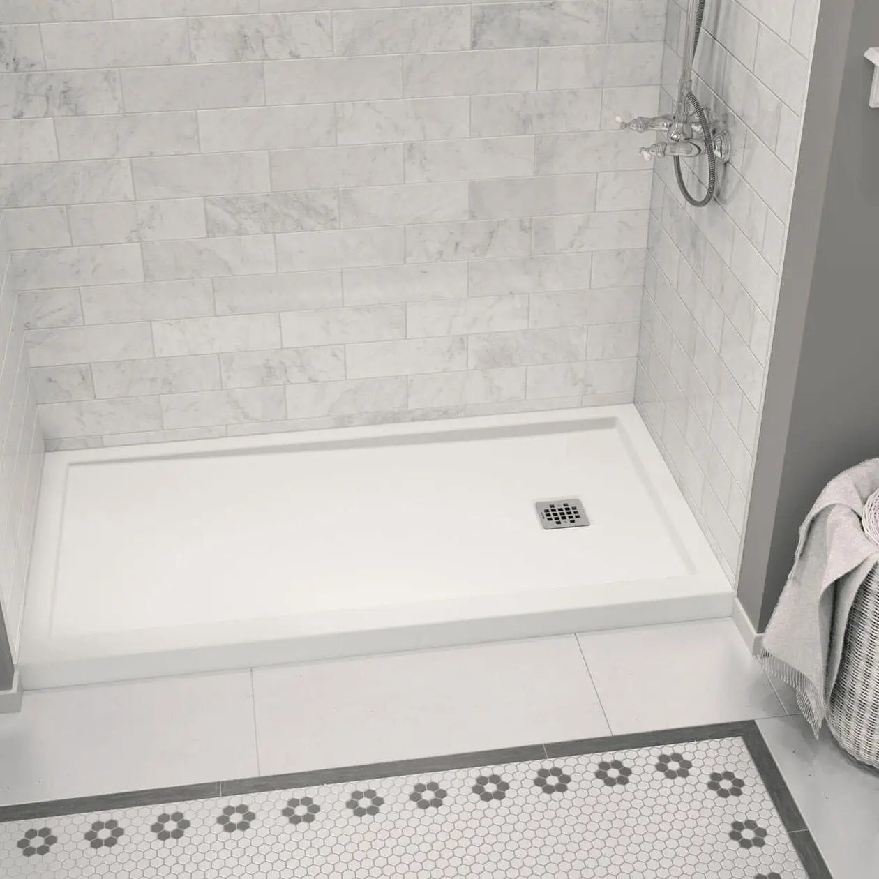 Zone Square 60 x 32 Acrylic Alcove or Corner Shower Base in White with Right-Hand Drain