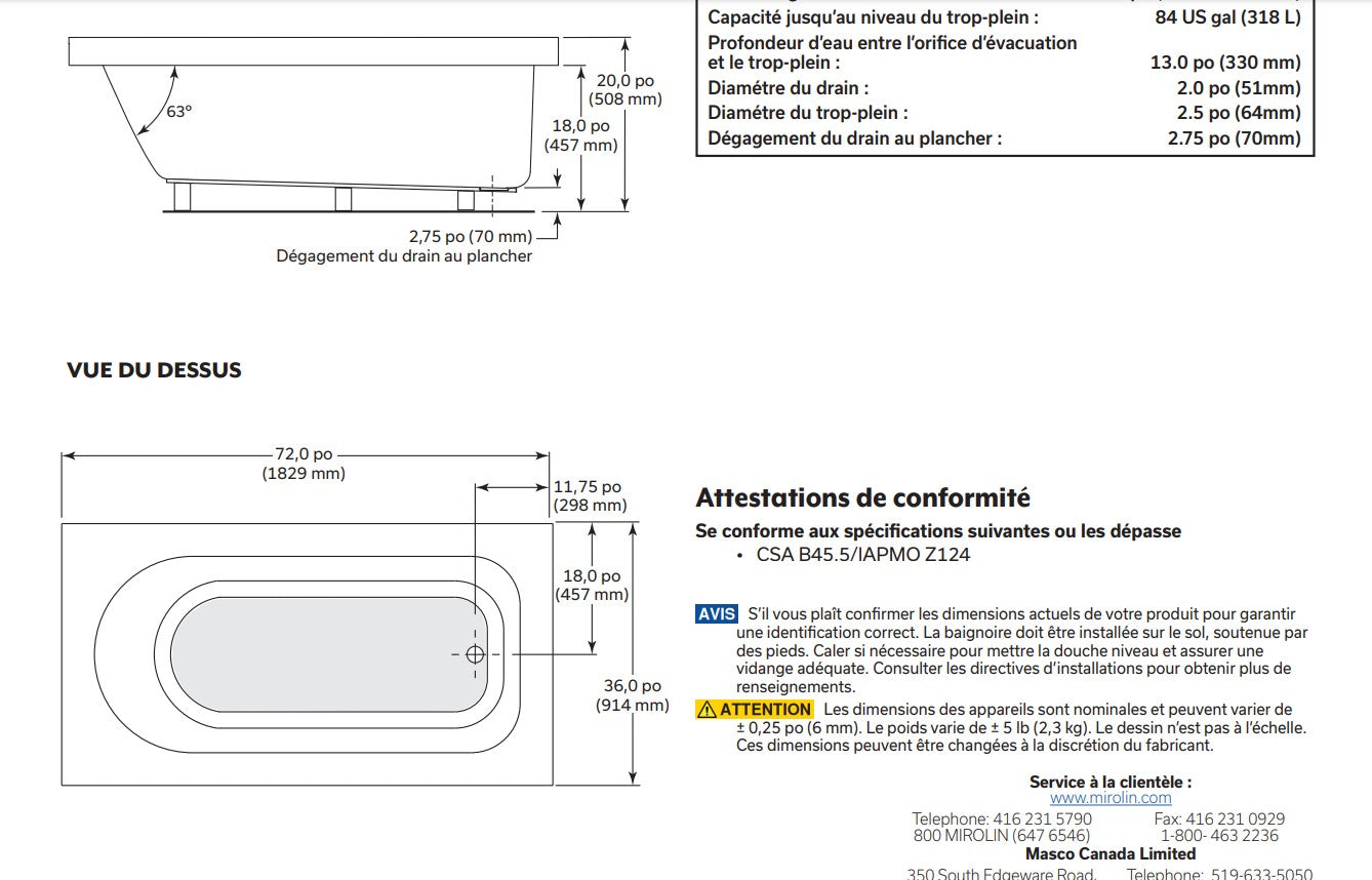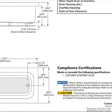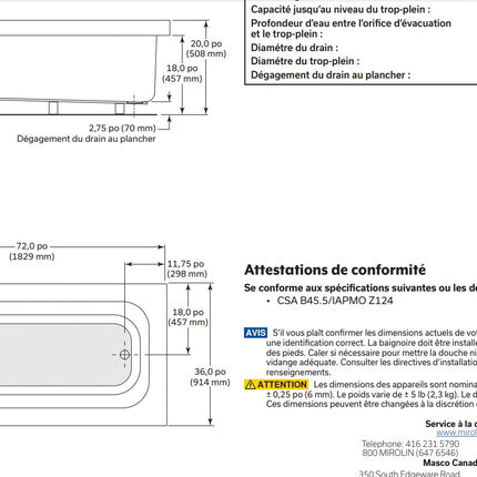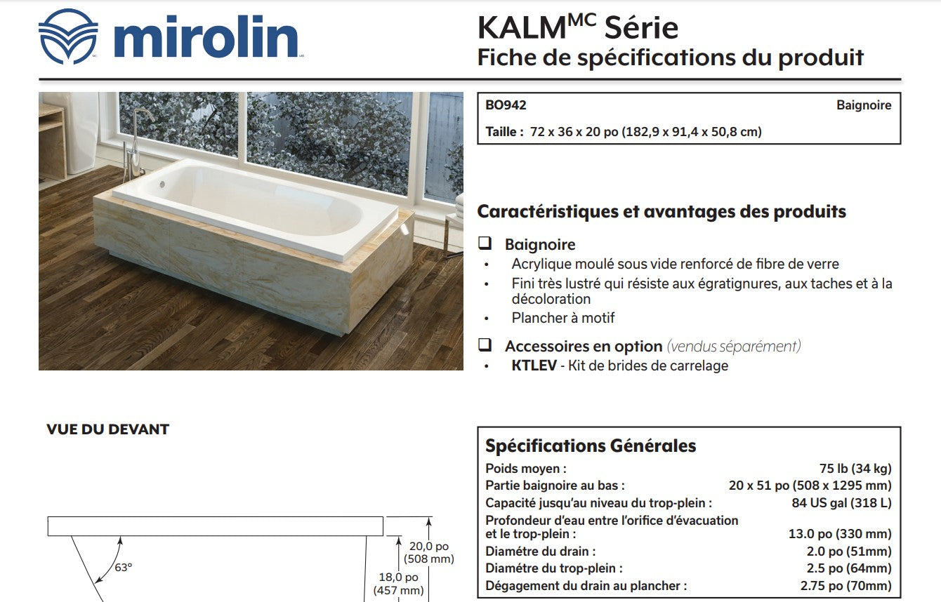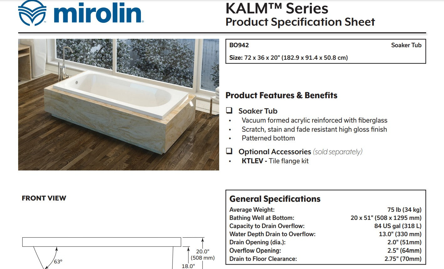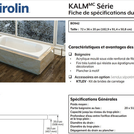 The Mirolin Kalm 72 x 36 Drop-in Bathtub is a statement of contemporary elegance and comfort, designed to enhance your bathing experience. Crafted with precision and style, this drop-in bathtub seamlessly integrates into your bathroom, bringing a touch of sophistication to your space.