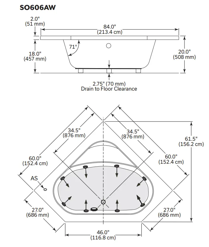 Mirolin Soho 1 60 x 60 Drop-In Center Drain Bathtub in White
