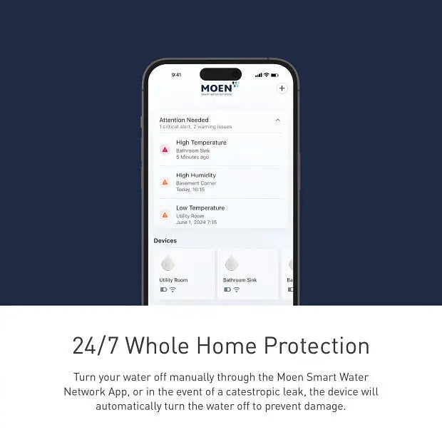 - Protect multiple properties in the Moen Smart Water App, such as your primary home, vacation home, and rental properties.