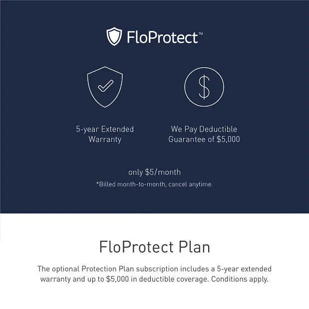 - The optional FloProtect Subscription plan includes a 5-year extended warranty and up to $5,000 deductible coverage on your home insurance policy if you experience water damage with the Smart Water Monitor and Shutoff installed.
