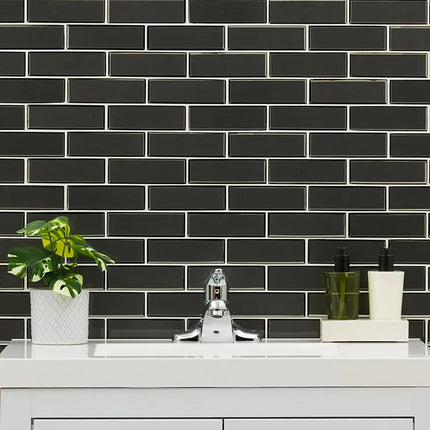 MSI Surfaces Backsplash Metallic Gray Bevel Subway Glass Tile