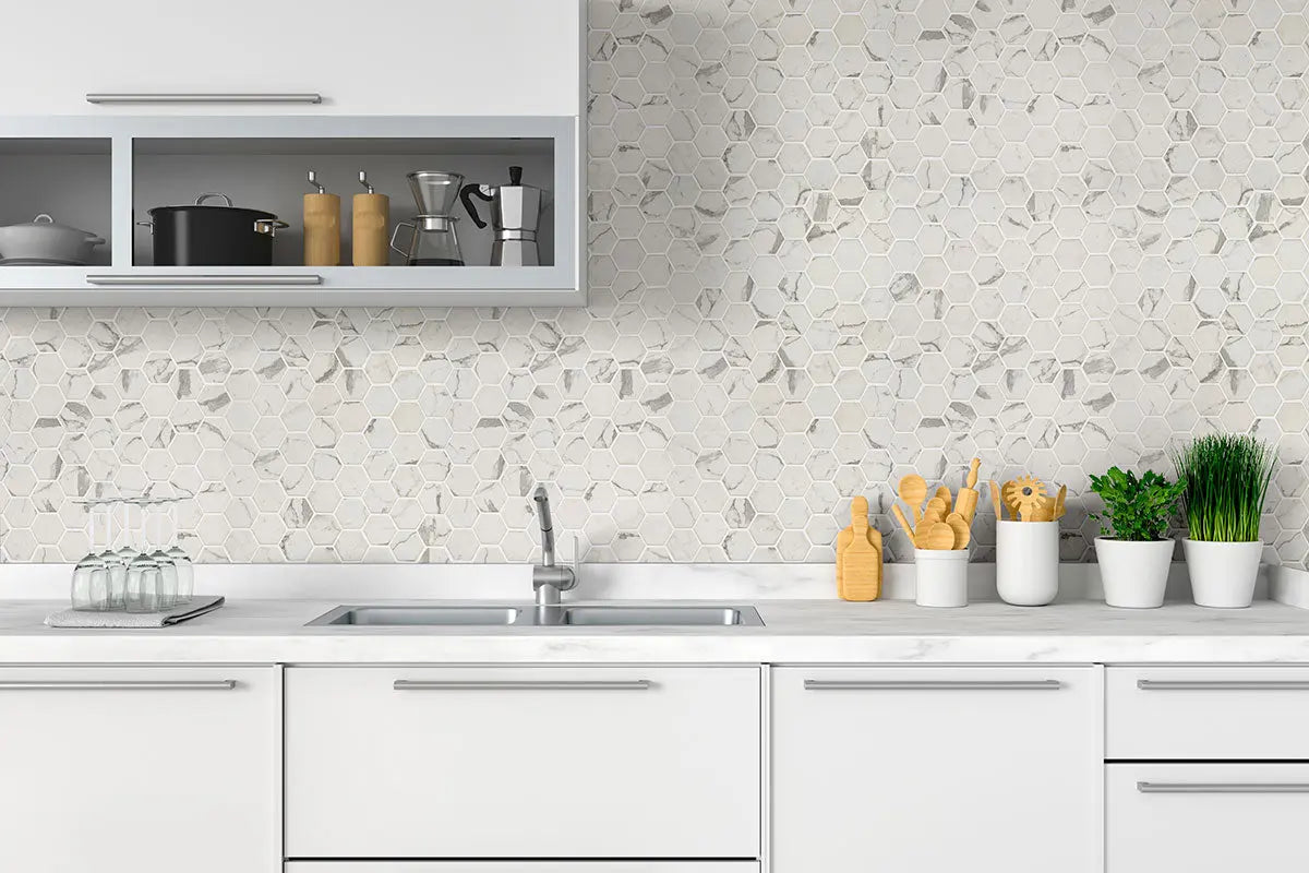 MSI Surfaces Backsplash Statuario Celano Hexagon Mosaic Tile