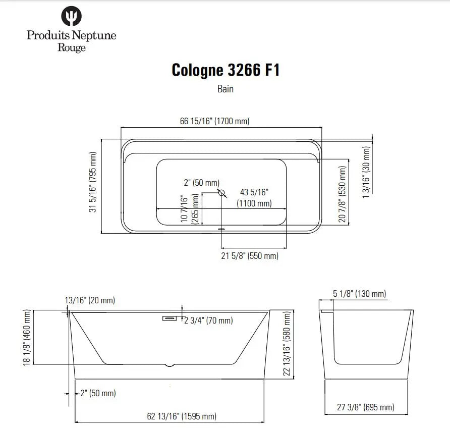 Produits Neptune Cologne 3266 AFR Acrylic Free Standing Bathtub