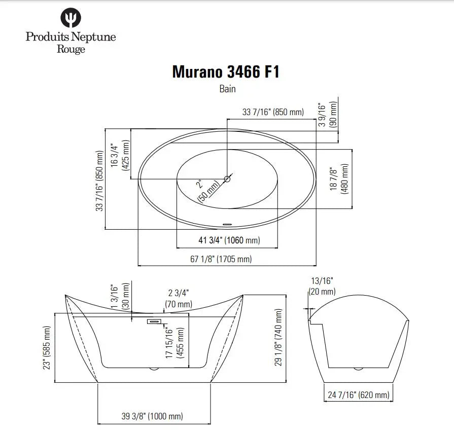 Produits Neptune Murano 3466 AFR Acrylic Freestanding Bathtub