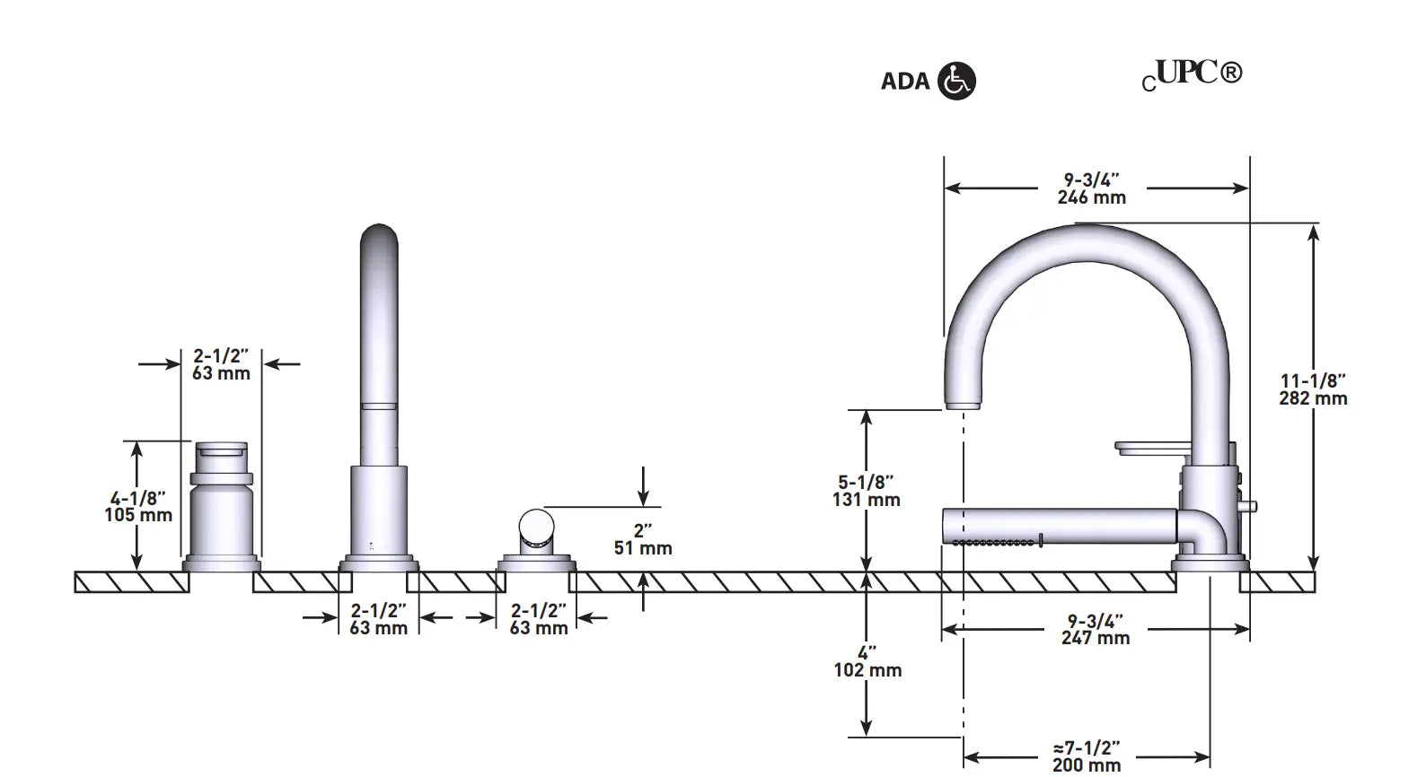 Riobel Arca 3-Hole Deck Mount Tub Filler Trim