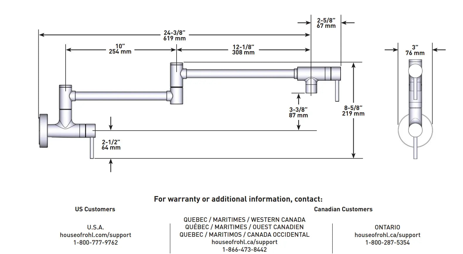 - Dual handle shut-offs, one at the wall and one at the outlet