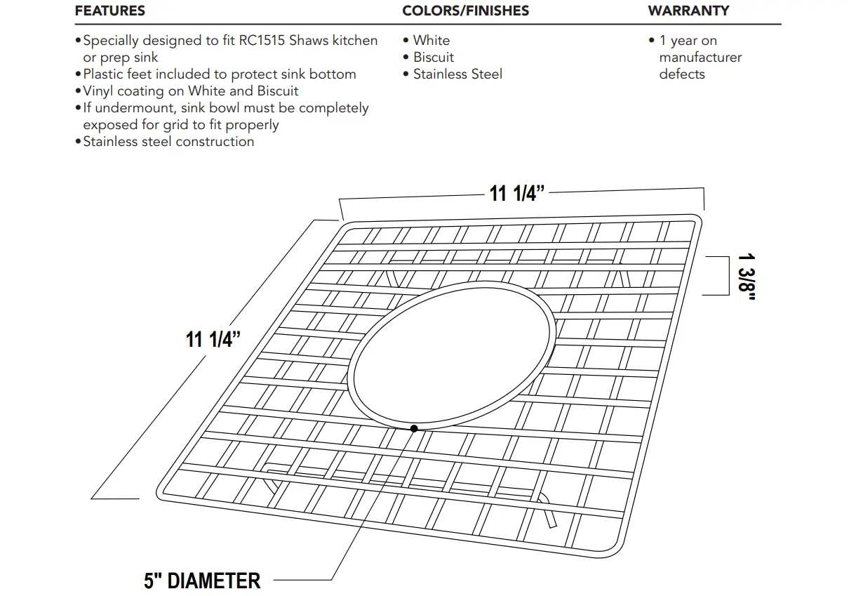 - Specially designed to fit RC1515 Shaws bar/food prep sink