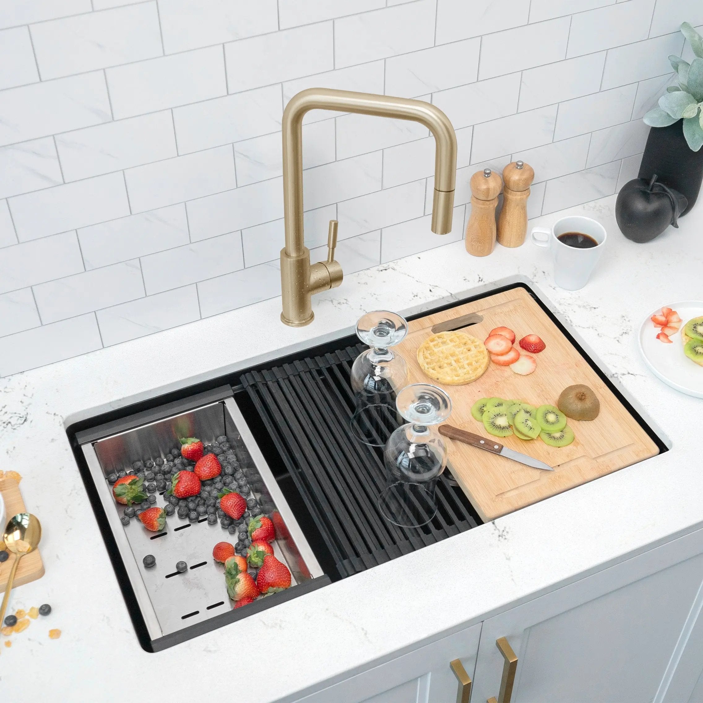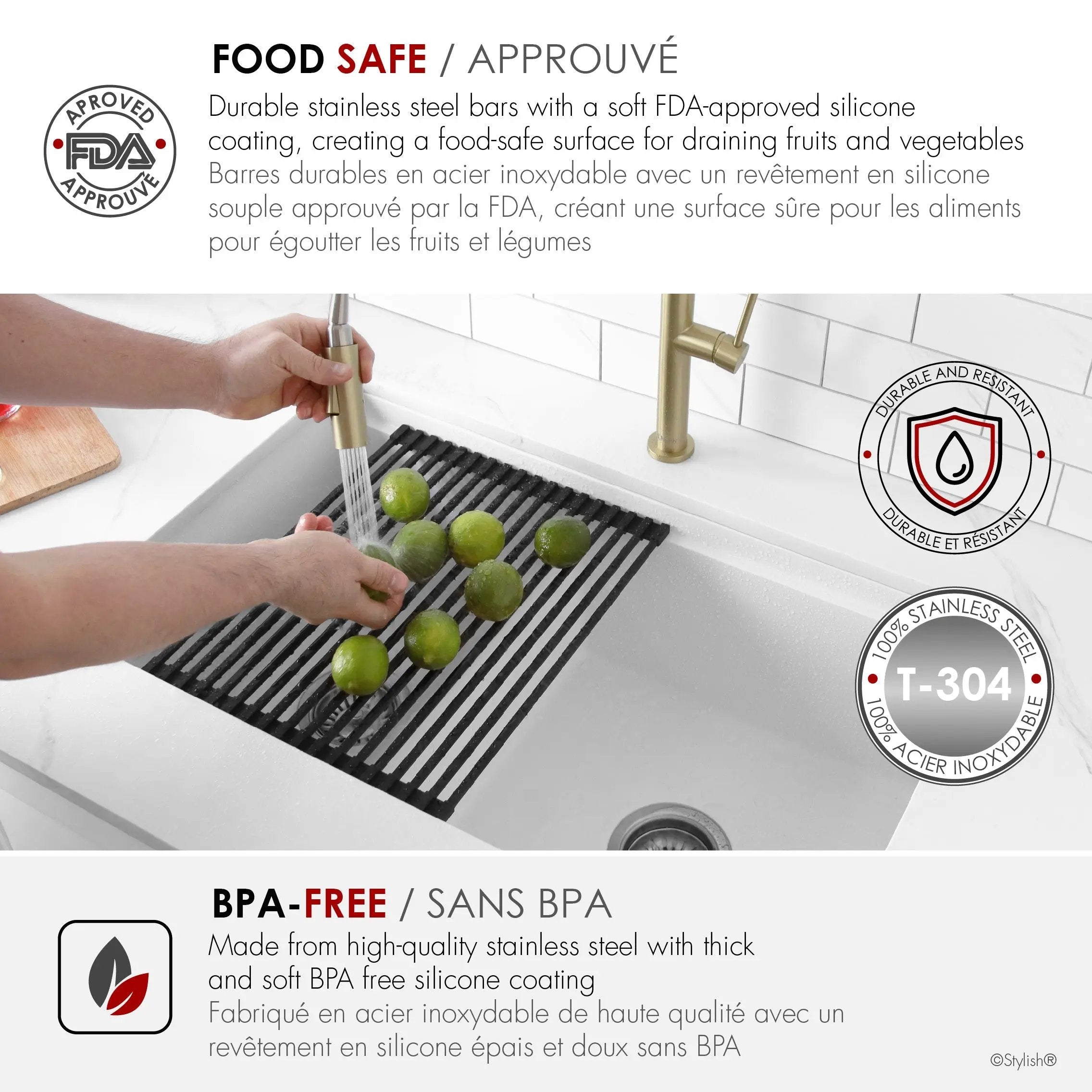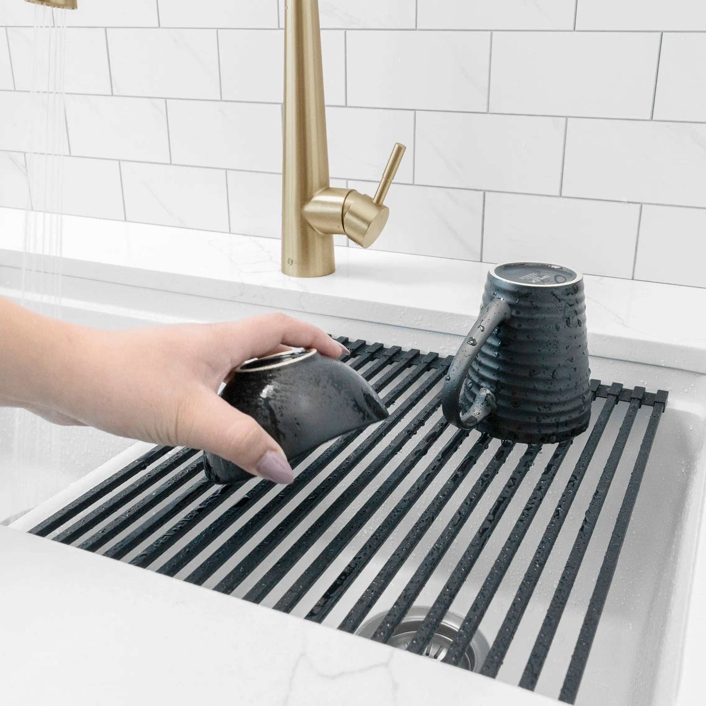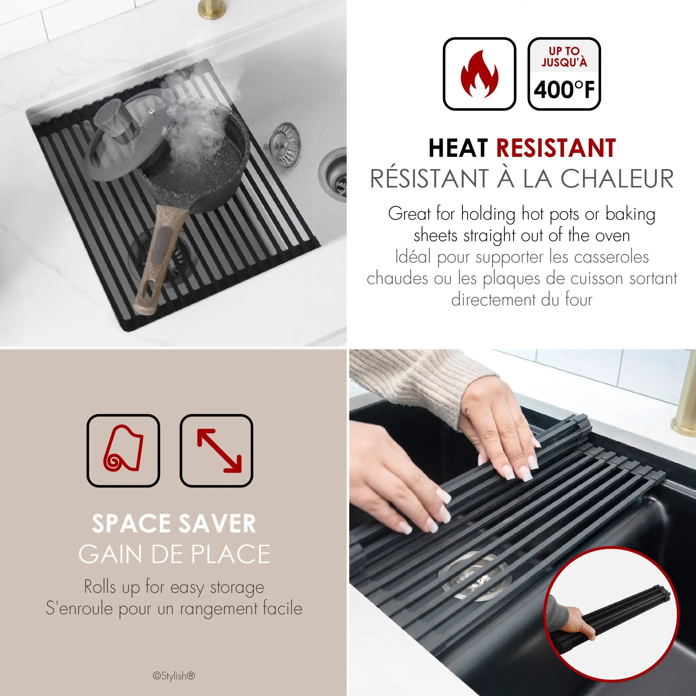 Stylish 15 1/4" Black Workstation Sink Roll-up Drying Rack/Trivet