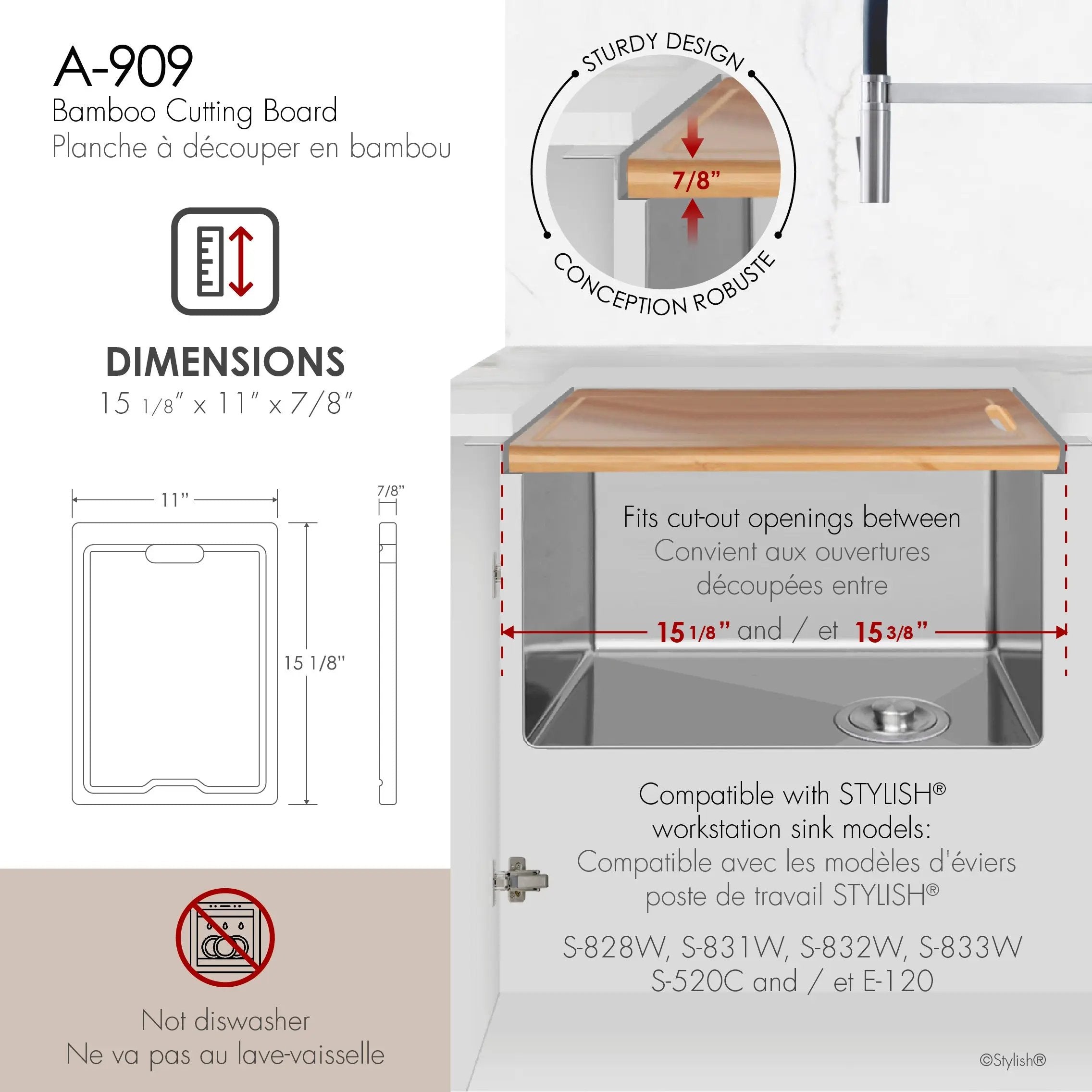 Stylish 15 1/8" Bamboo Workstation Cutting Board