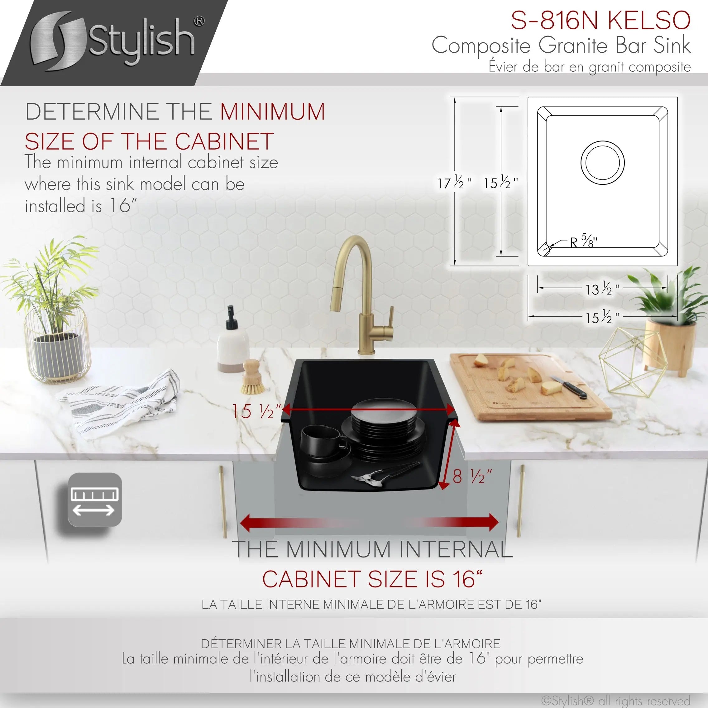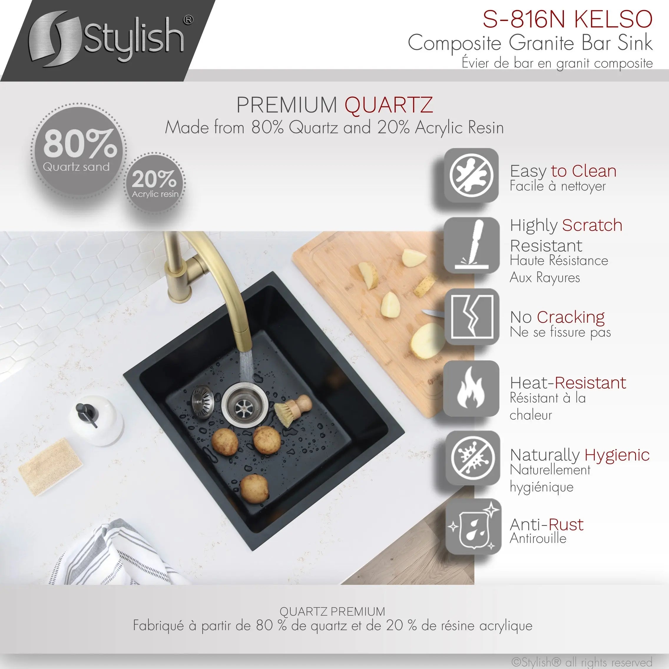 Rock your kitchen experience with this amazing 15.5-inch single bowl dual mount composite granite kitchen sink made with 80% natural quartz. This sink is exceptionally durable and low-maintenance, with a stone-like material that is much lighter than solid granite but still great for handling your everyday demands. Highly resistant to scratches and dirt, this sink is also quite easy to clean and maintain. Designed for dual mount installation, it can be installed over the countertop or as an undermount sink for a more seamless appearance.