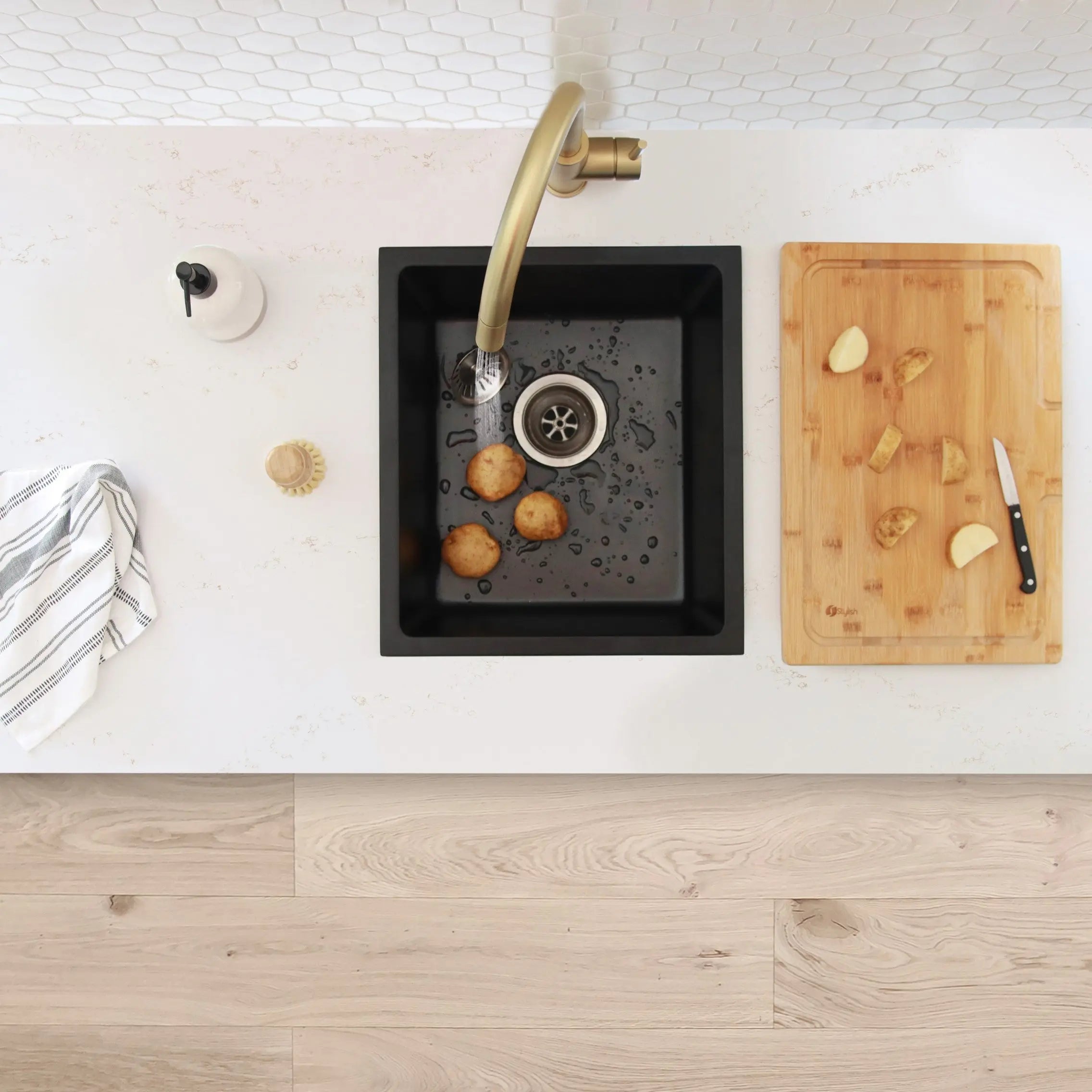 The thick composite granite helps to eliminate vibration and noise when the sink is in use, ensuring that turning on your faucet remains enjoyable.
