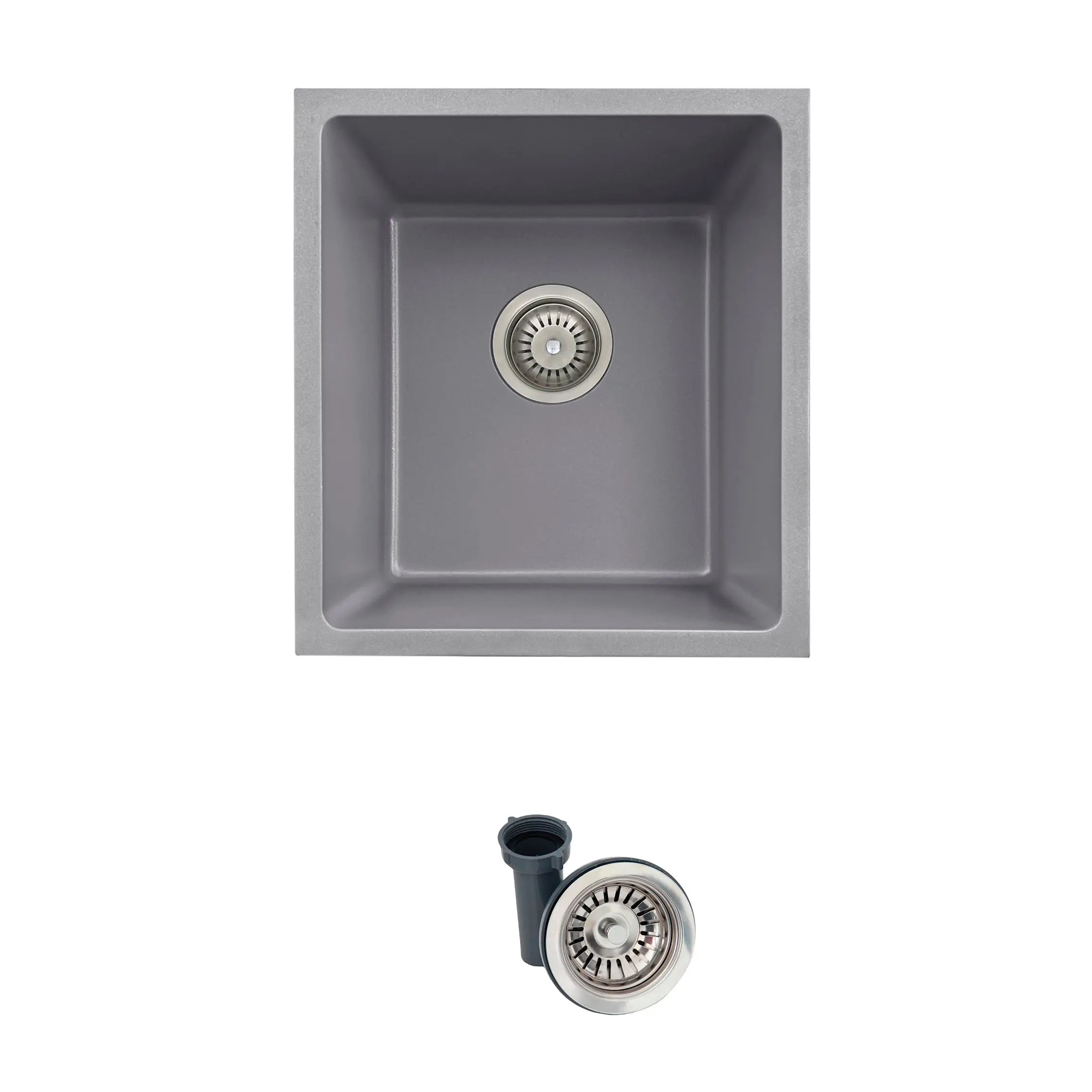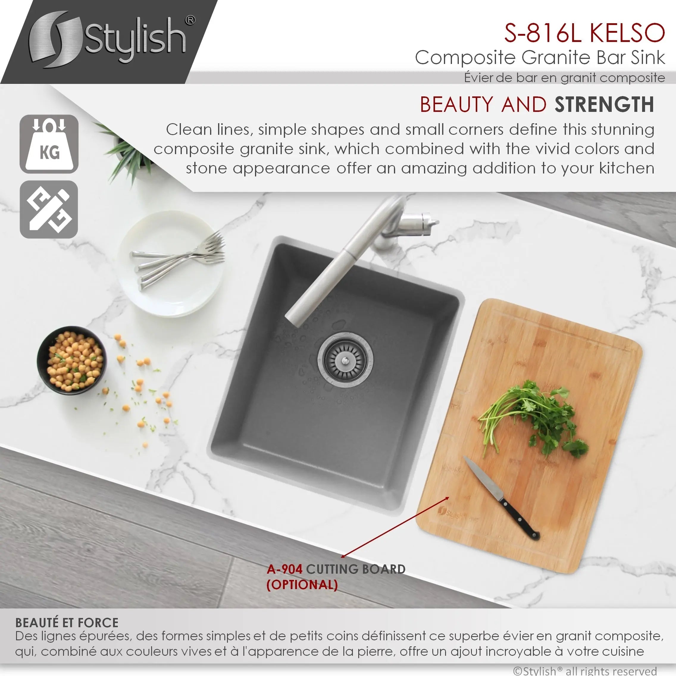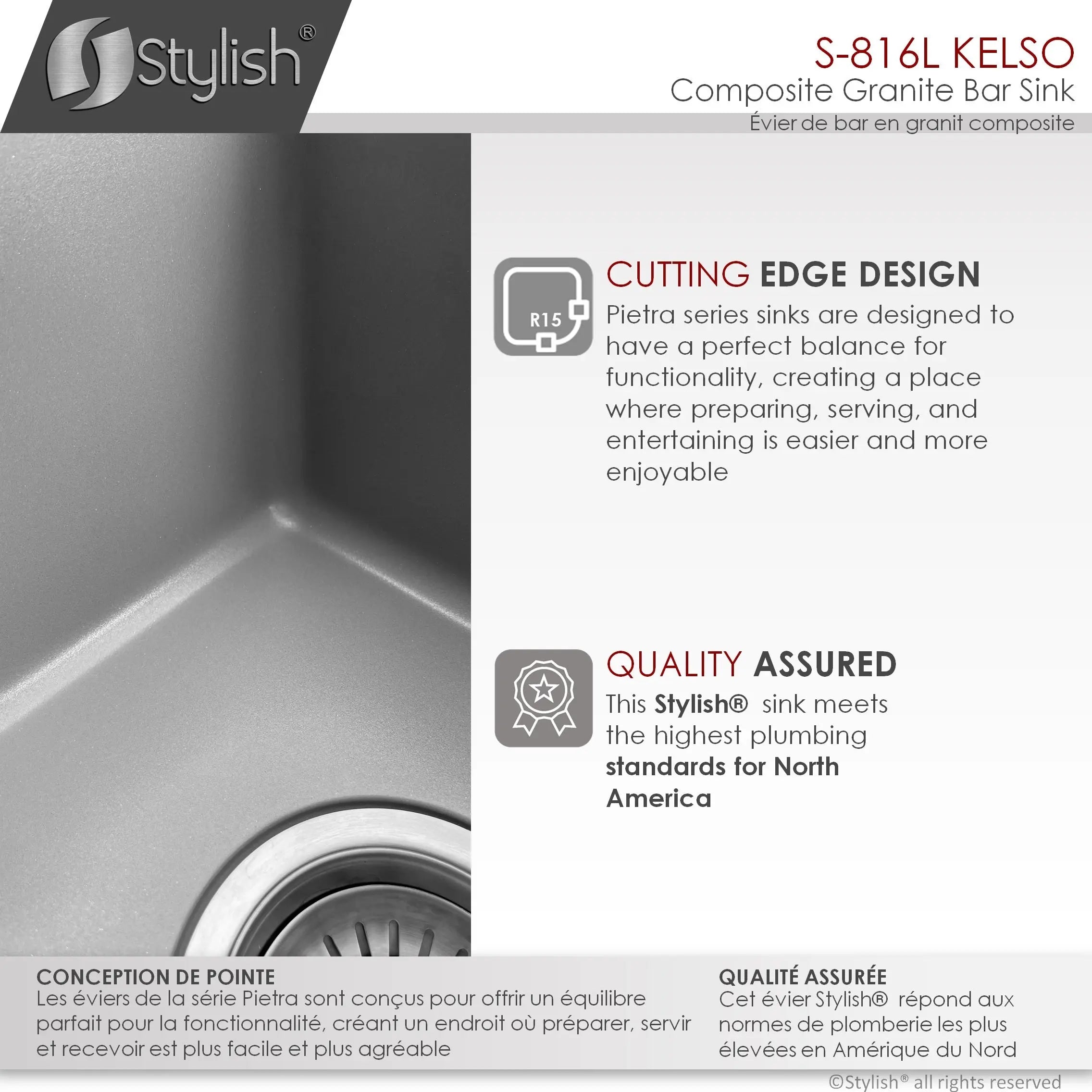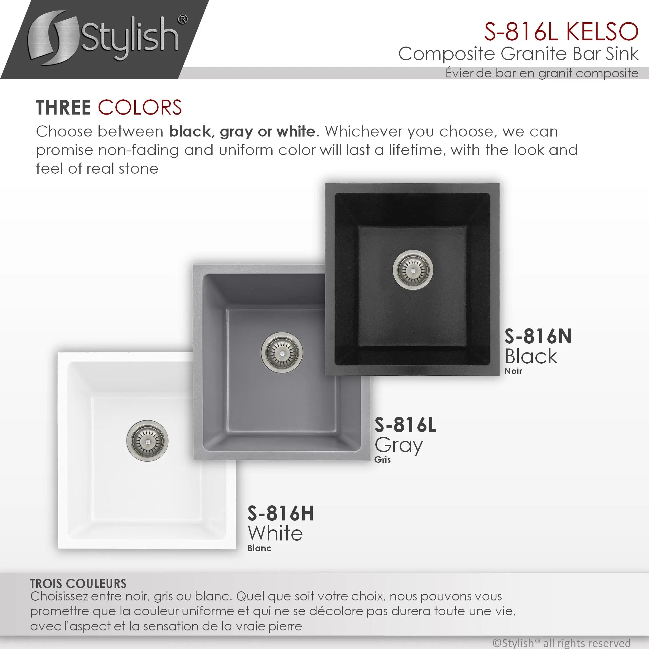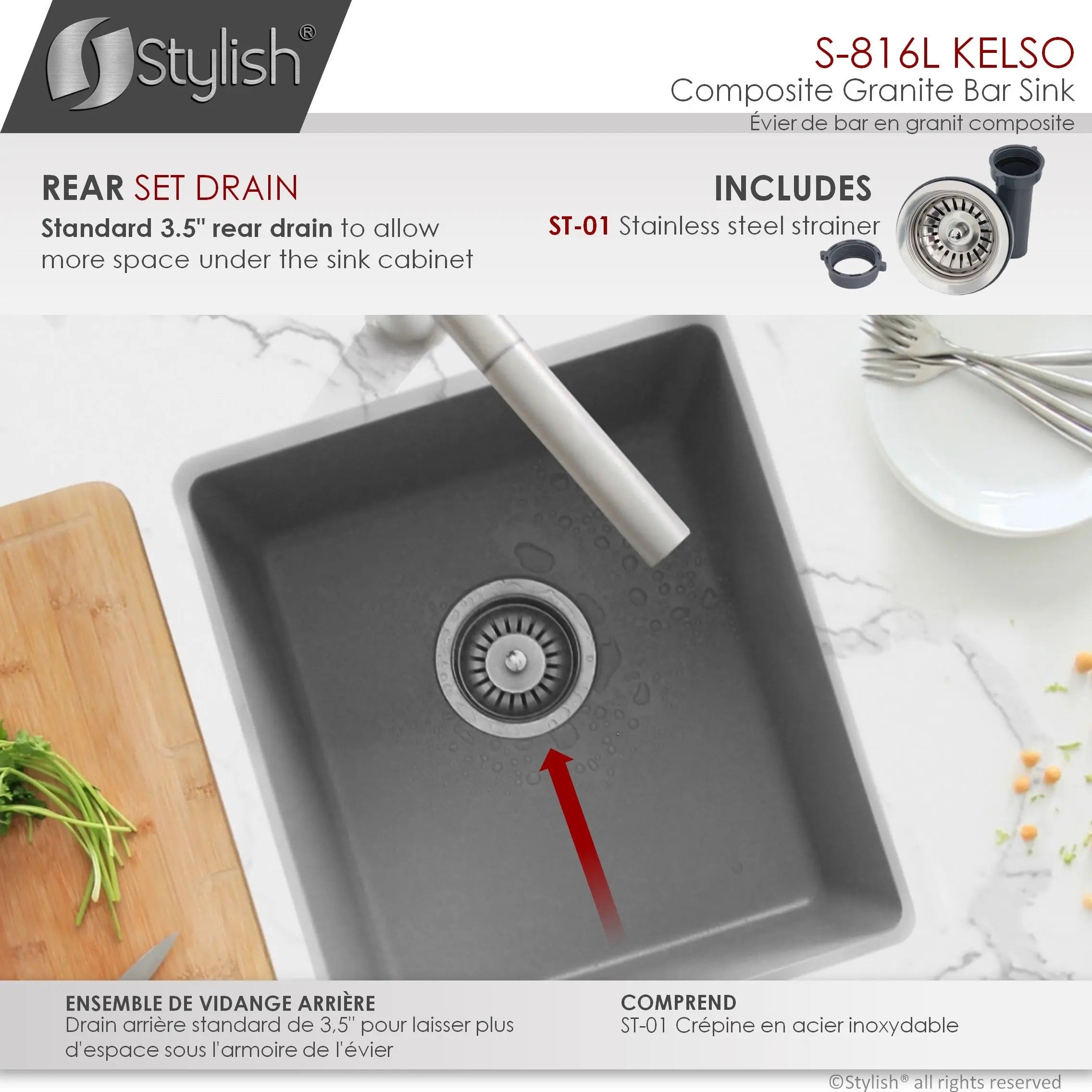 STYLISH 16 inch Dual Mount Single Bowl Gray Composite Granite Kitchen Sink with Strainer S-816L - Plumbing Market