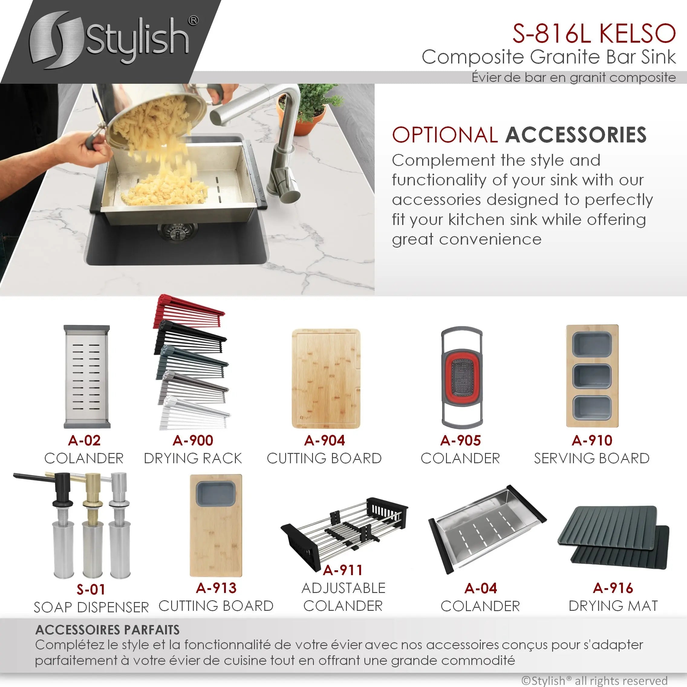 Complement the style and functionality of your sink with our accessories, designed to perfectly fit your single bowl dual mount composite granite sink while offering great convenience.