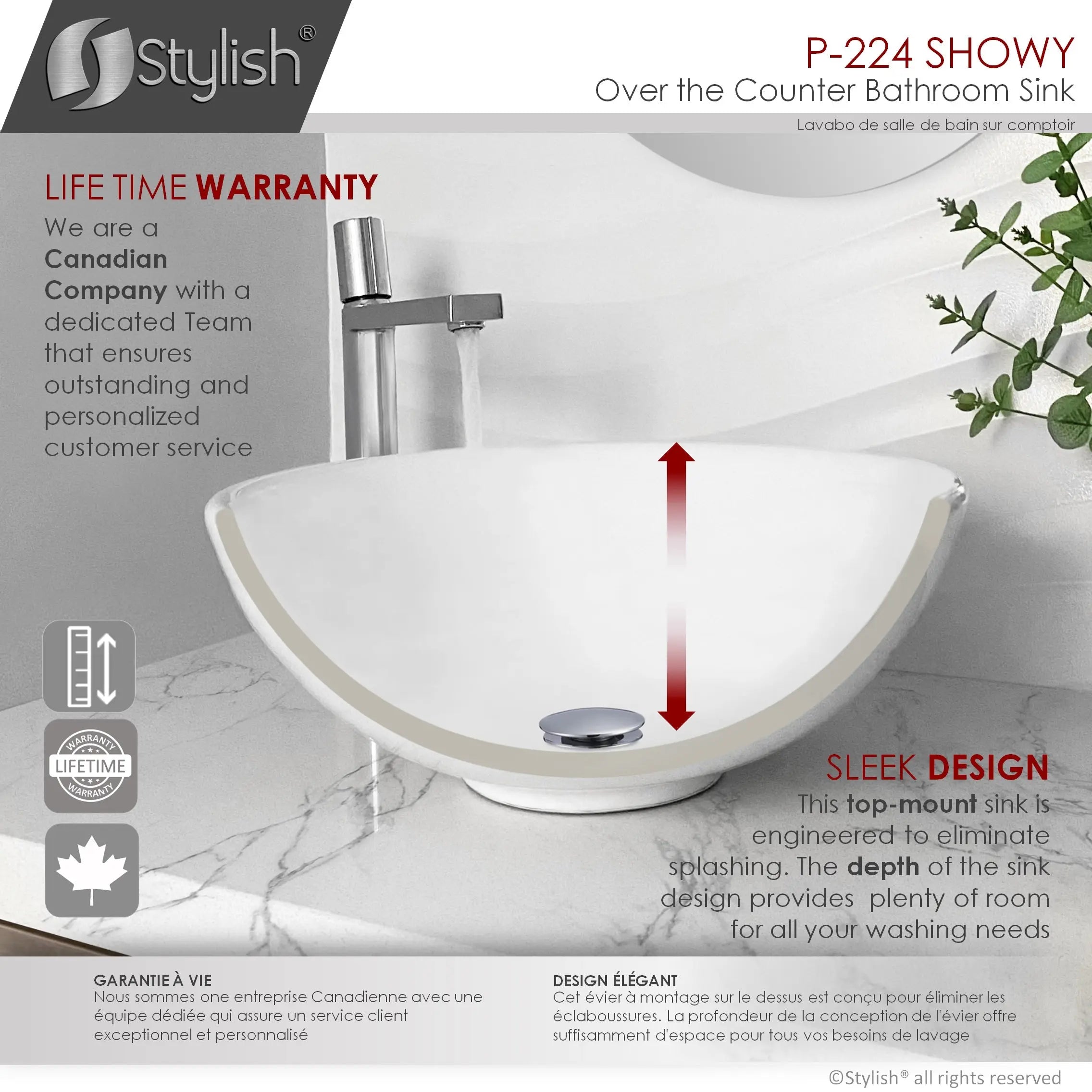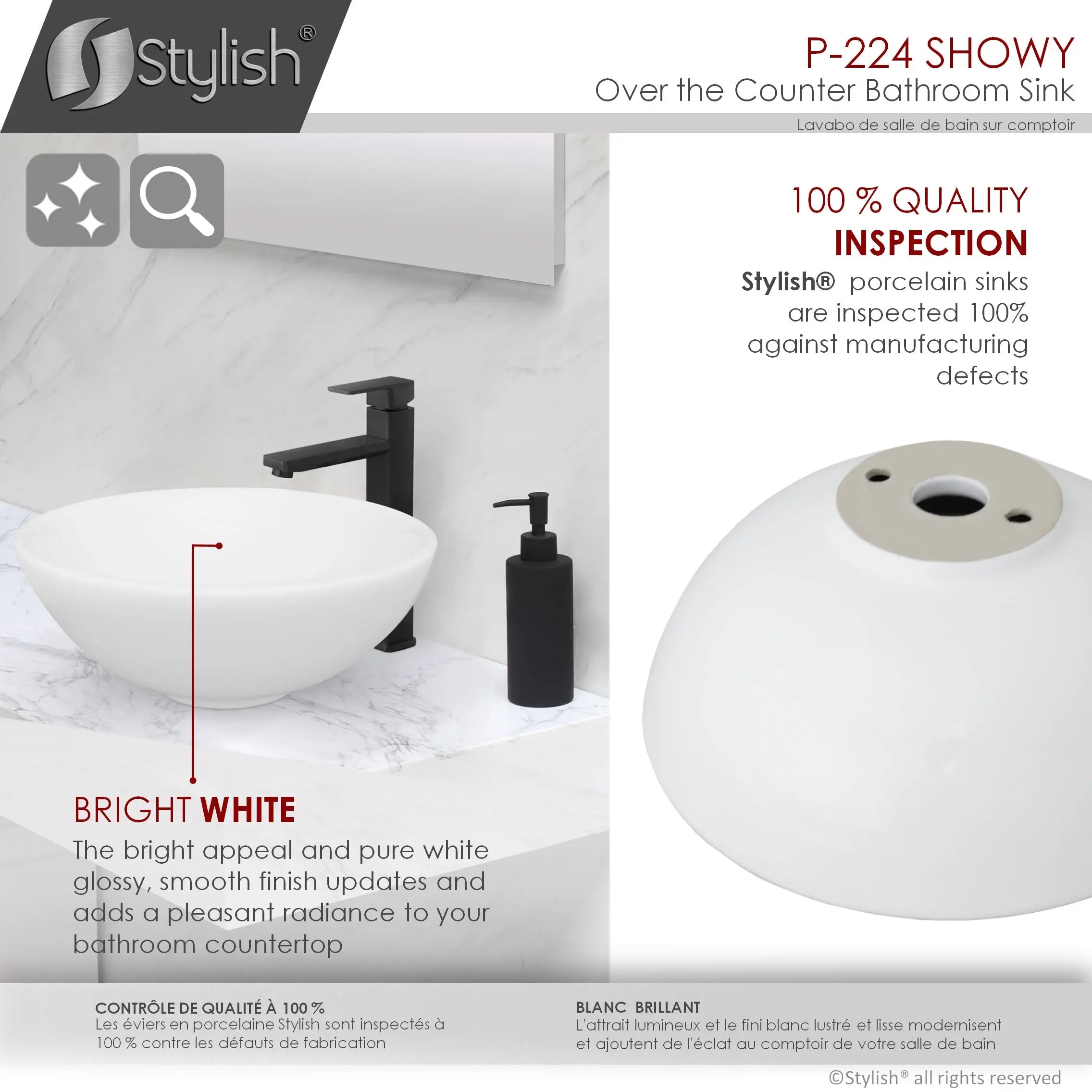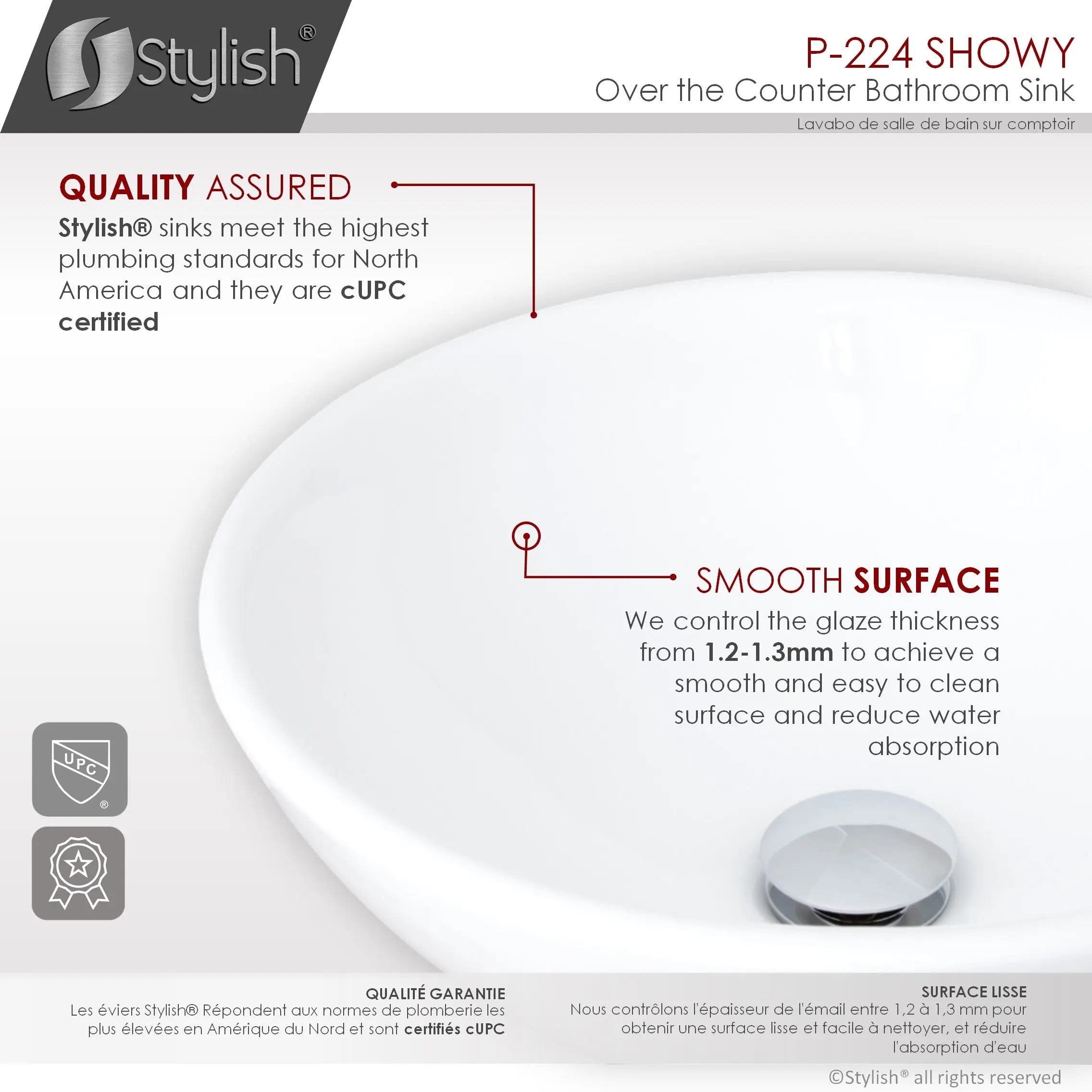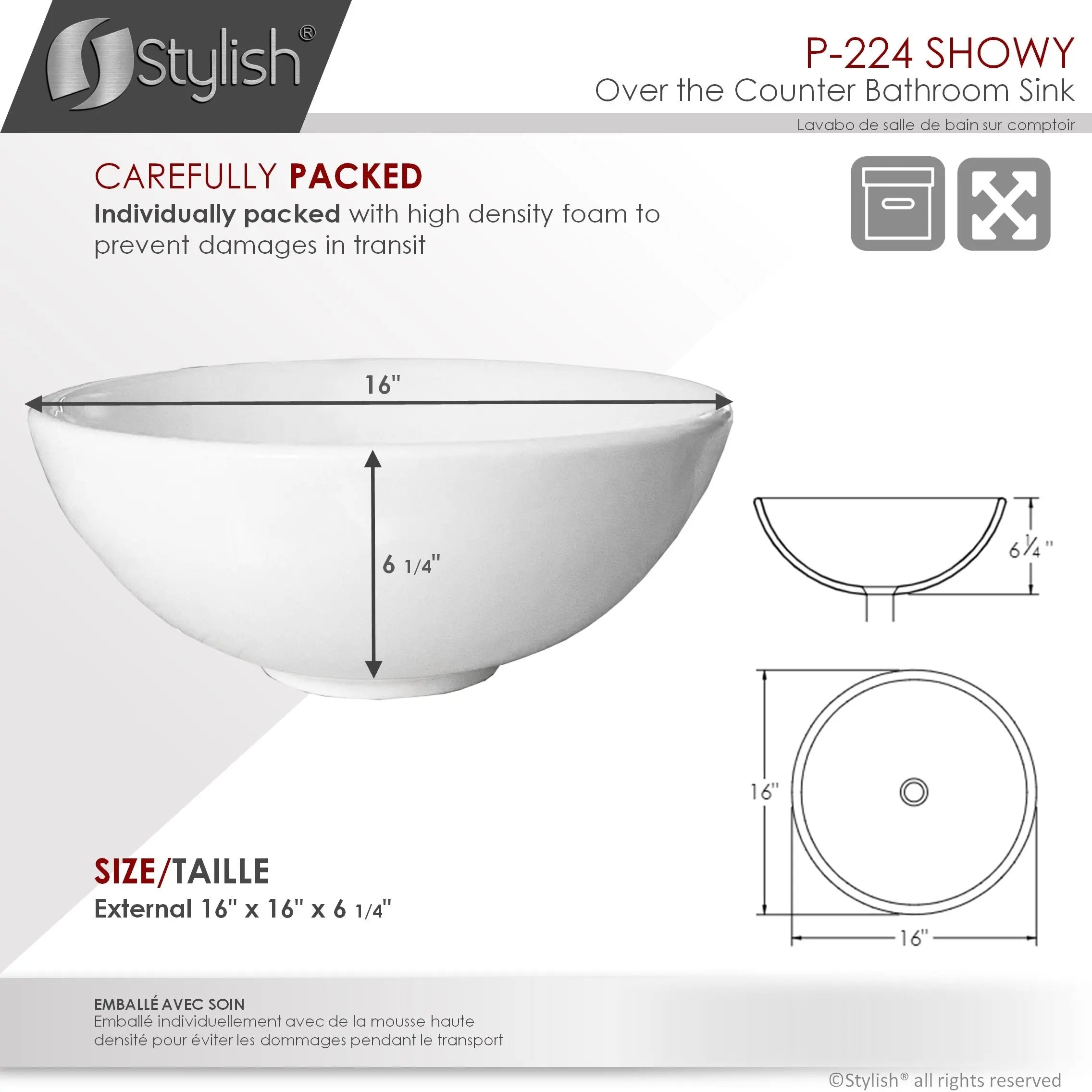 STYLISH 16 inch White Round Ceramic Vessel Bathroom Sink P-224