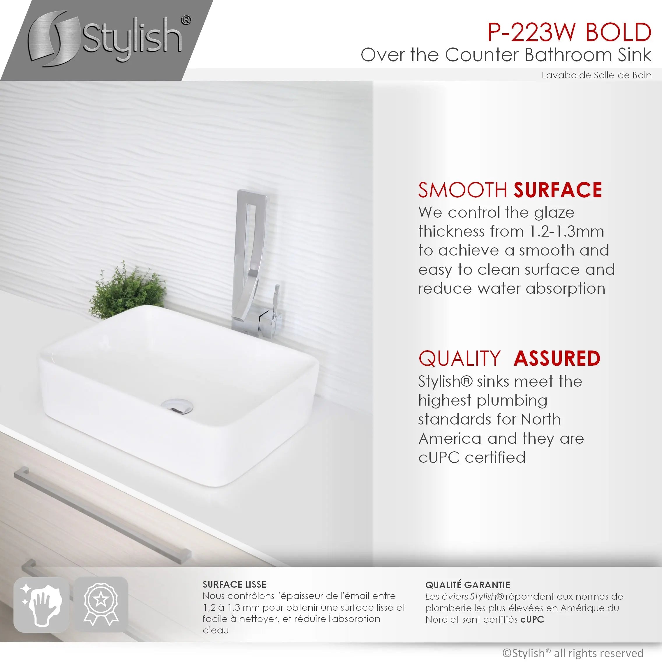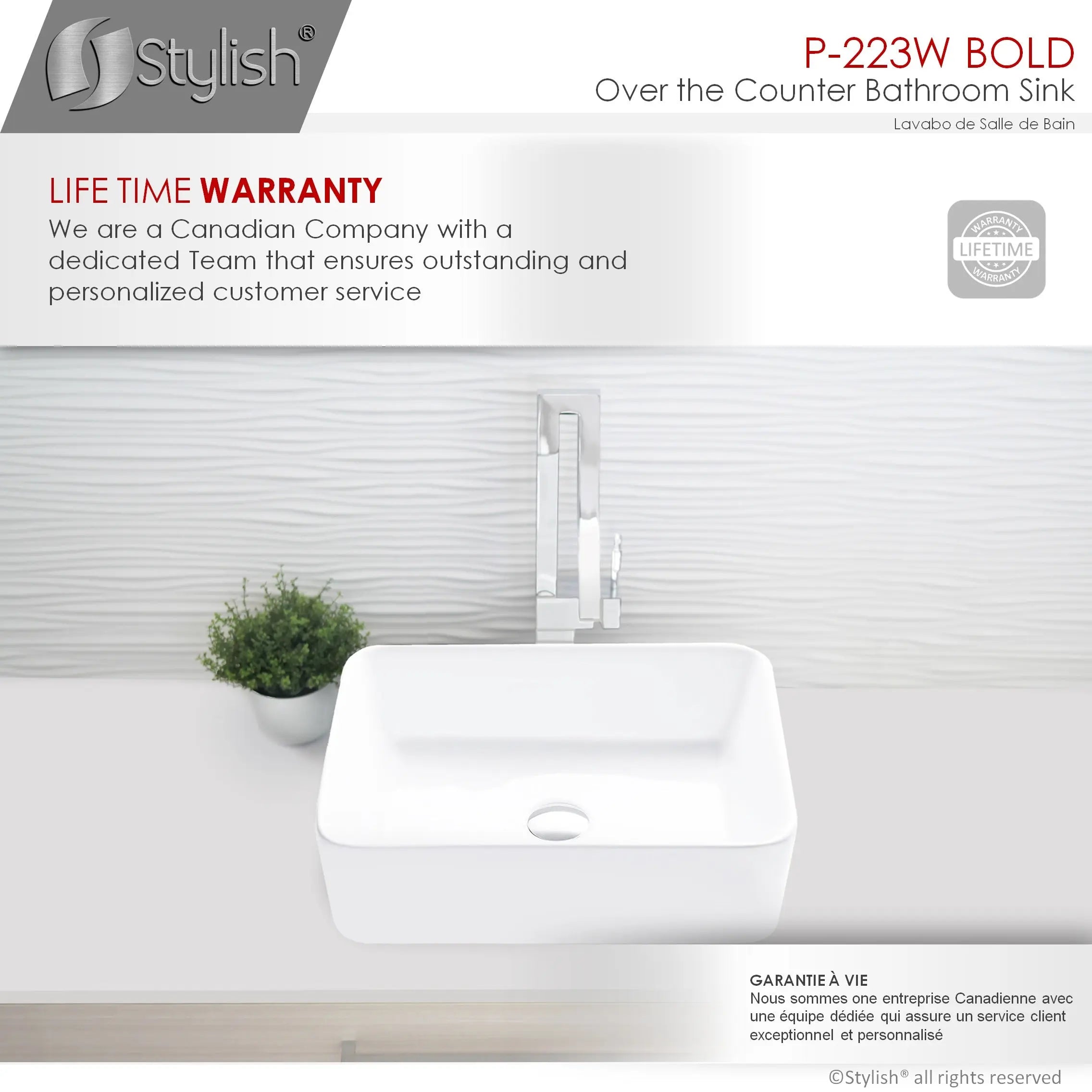 STYLISH® 18 inch White Rectangular Ceramic Vessel Bathroom Sink Optimize The Looks of Your Bathroom With STYLISH® Ceramic Sinks!In search of… … cost effective ways to decorate your bathroom?… a brand new above the counter sink vessel?… durable yet elegant bathroom sinks?… a sink vessel that is stain and chip resistant?Search no more! You have just found the ultimate bathroom vessel sinks!Add one to your bathroom décor today and enjoy it for the many years to come!The glamorous shine and impeccable square shape will make any bathroom space look absolutely stunning.Perfect not only for your home but for commercial use as well. Ideal for hotels, public restrooms, bars and restaurants, spa and massage centers, business, receptions, and pretty much any place with a bathroom!When Quality ; Style Finally Meet… STYLISH® Is The Way To Go! Combining high quality ceramic, ultra resilient craftsmanship, and stain resistant properties, this bathroom sink vessel shouldn’t be missing from your bathroom counter! The lovely square shape is great for any bathroom style. Available in two finished, choose from Bright Black or White.From retro, colorful, minimalistic, and country, to modern, vintage, shabby chic, industrial, and romantic. Minimize Cleaning! Maximize Pleasure! Make your life easy again and facilitate cleaning time to the fullest.This ceramic bathroom vessel sink is really easy to clean and maintain. Just wipe it clean with a damp cloth or some soap. Being resistant to stains, fading and chipping, our ceramic sinks are here to satisfy even your most demanding needsPop-up drain is not included.