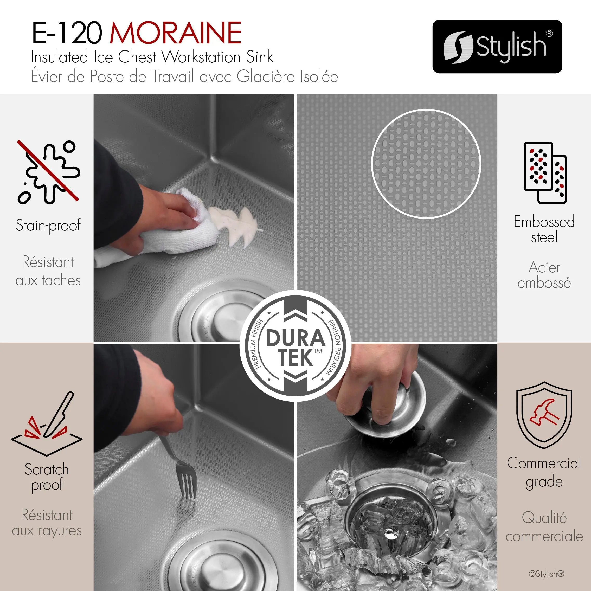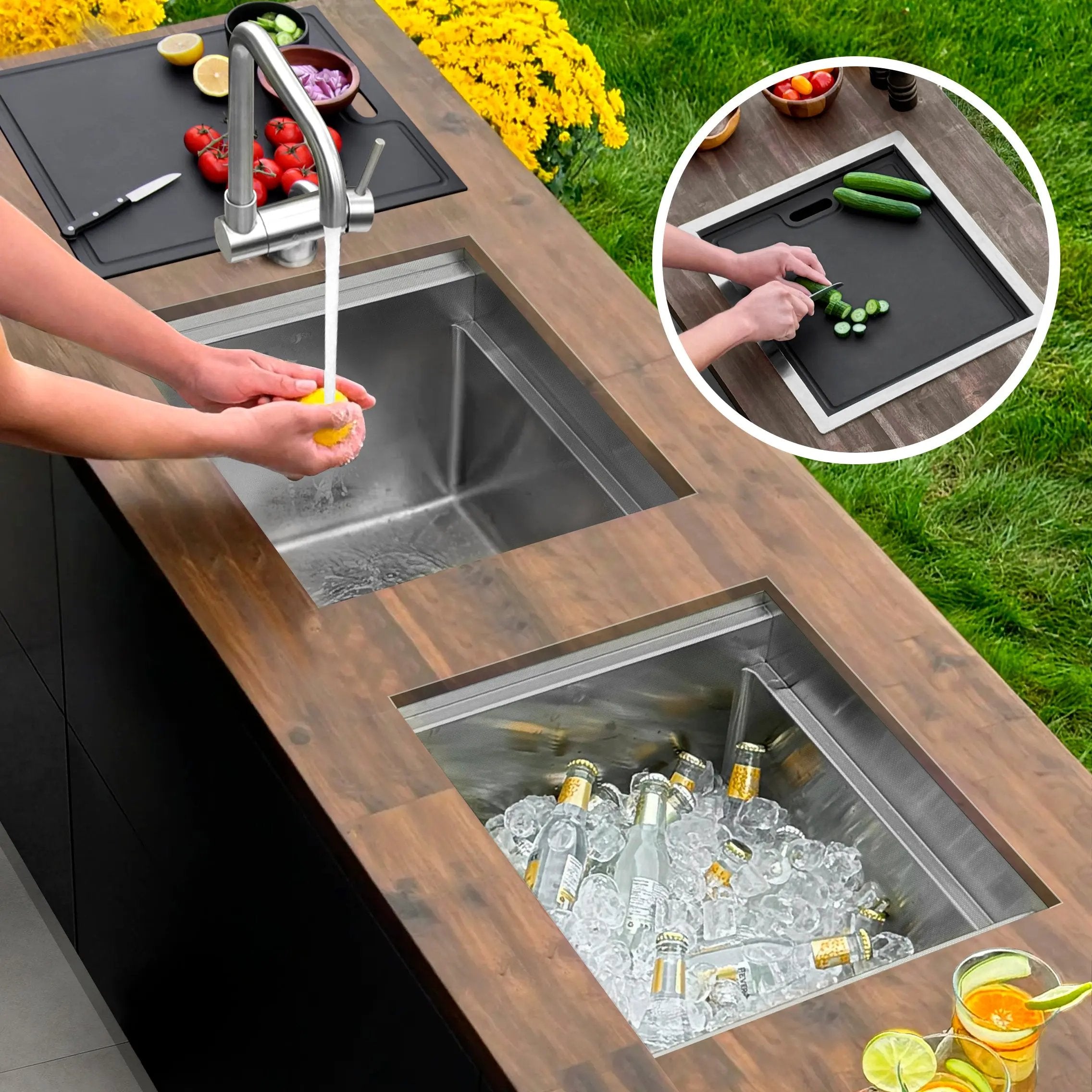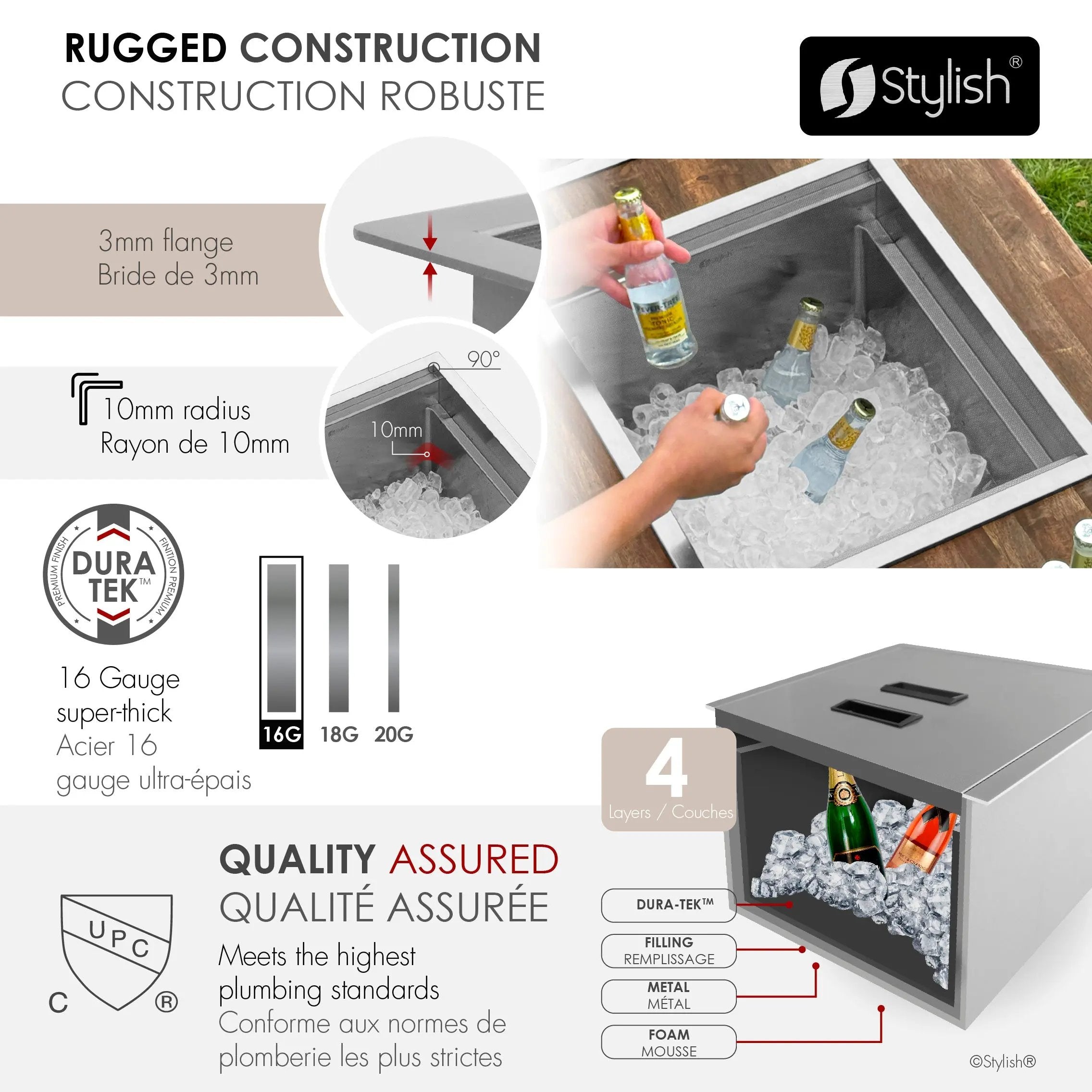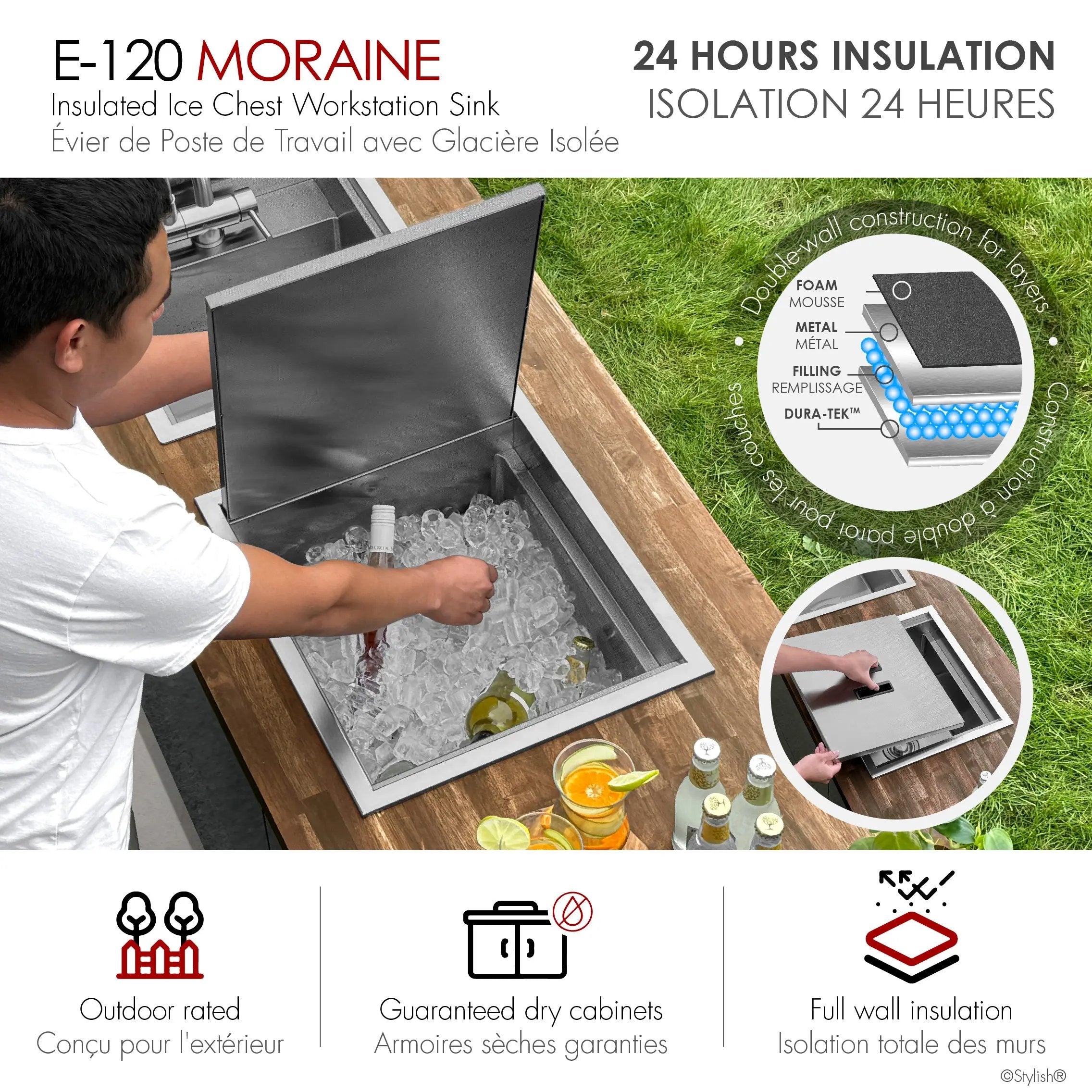 Stylish 20" Dual-Mount Stainless Steel Insulated Ice Chest Workstation Sink with Dura-Tek