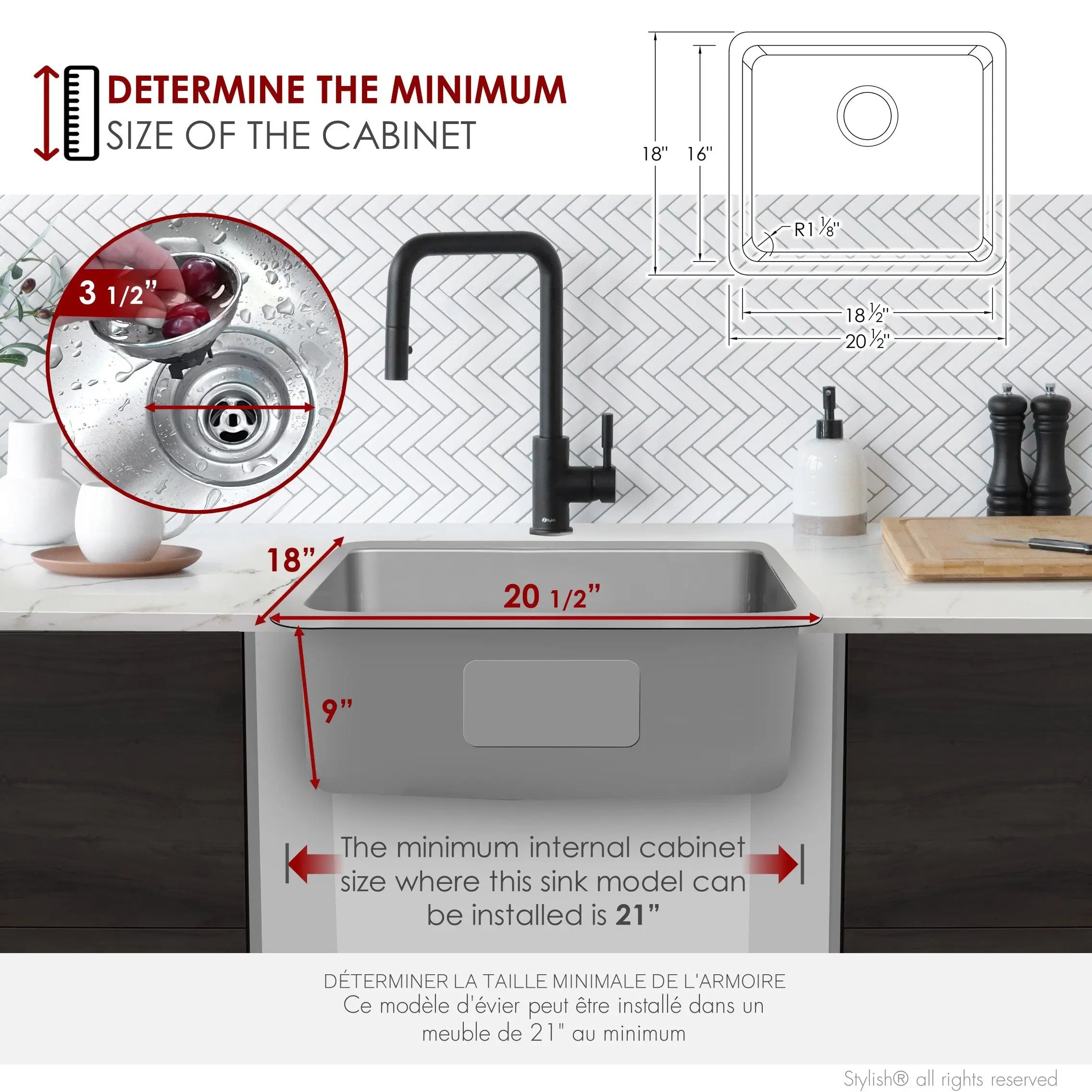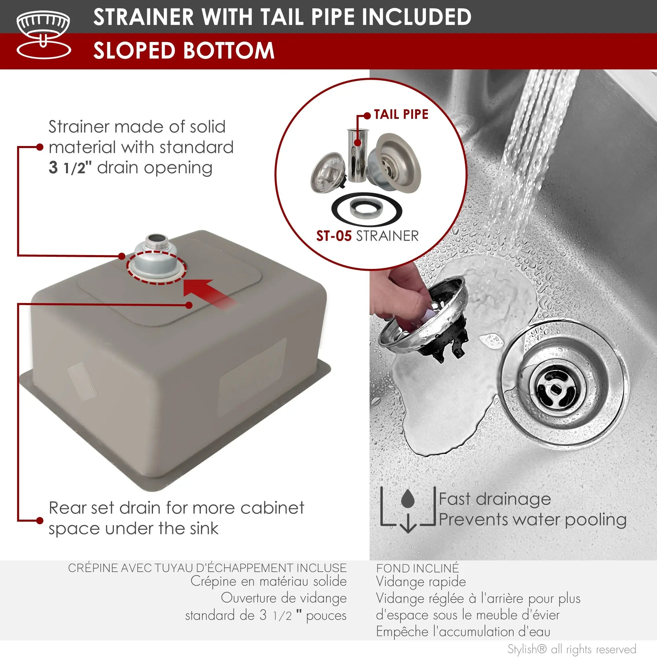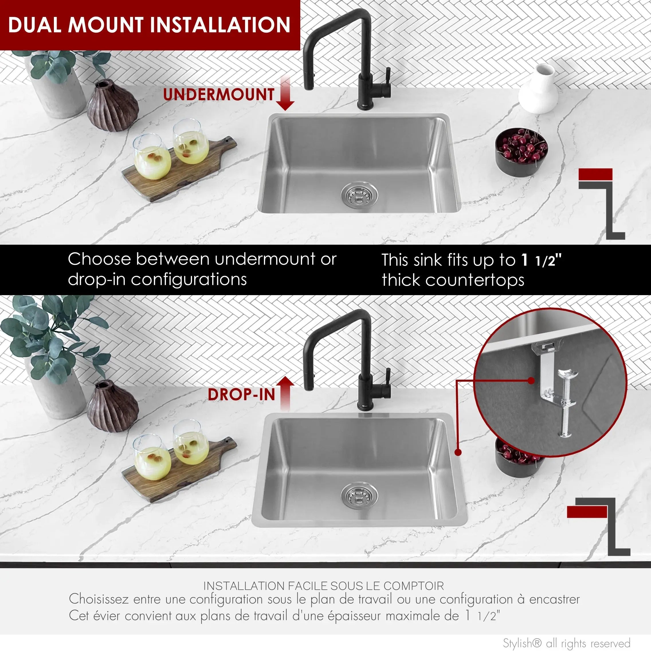 STYLISH 21 inch Single Bowl Undermount and Drop-in Stainless Steel Kitchen Sink S-408T