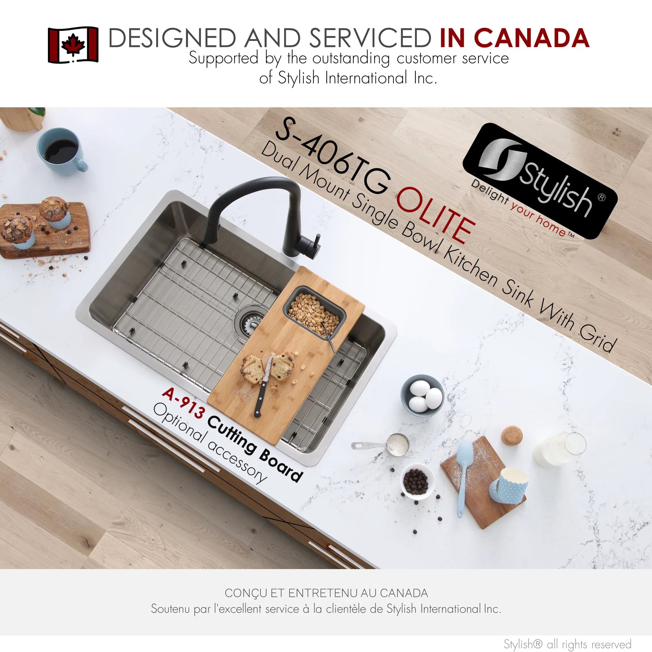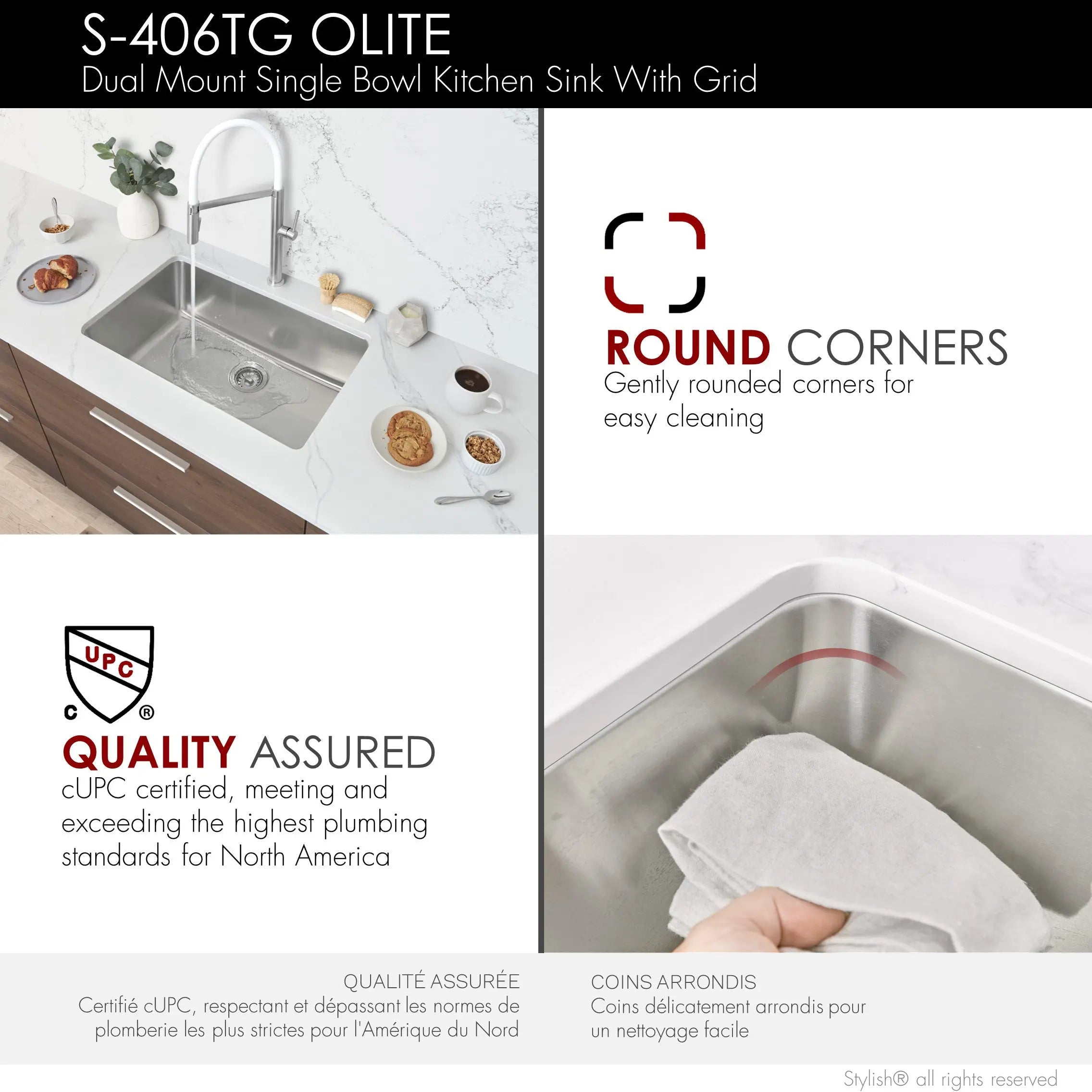 STYLISH 27 inch Single Bowl Undermount and Drop-in Stainless Steel Kitchen Sink S-406TG