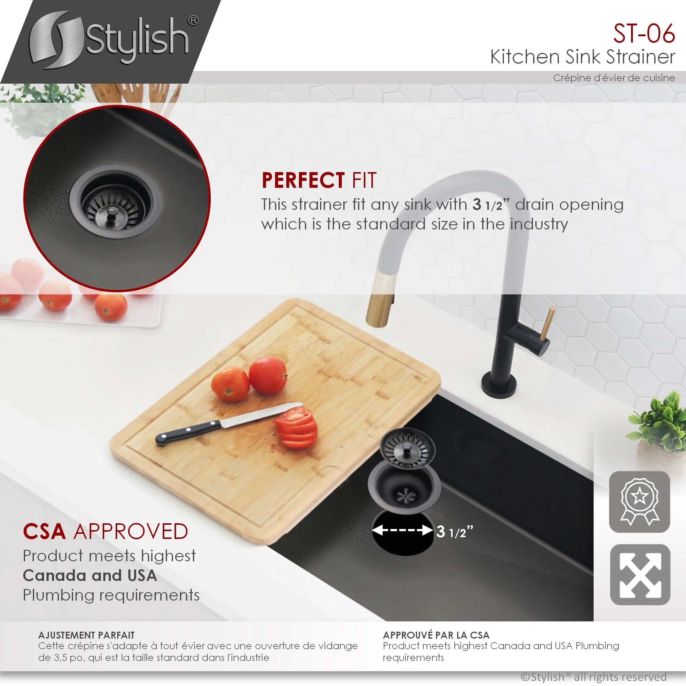 Stylish 3.5" Round Black Standard Strainer with Removable Basket