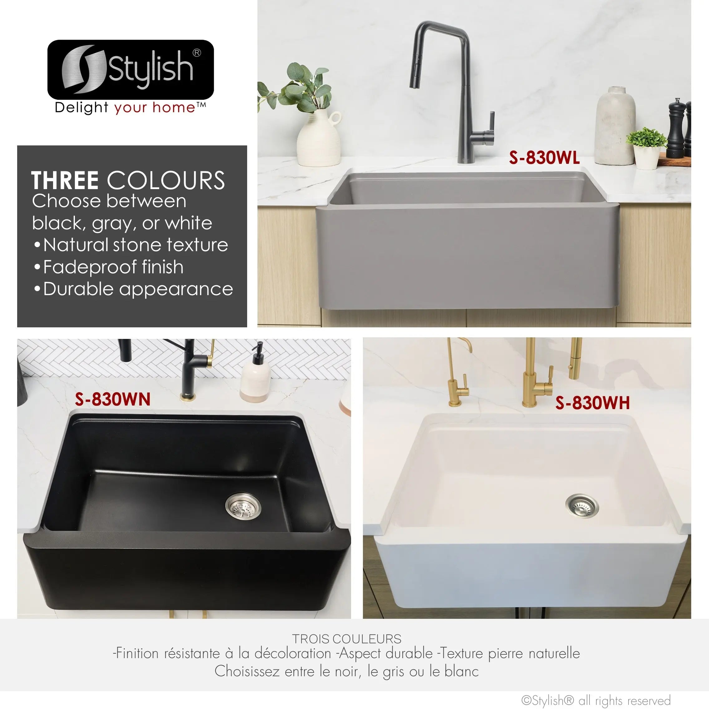 STYLISH 30 inch Farmhouse Workstation Single Bowl White Composite Apron Kitchen Sink with Built-in Accessories S-830