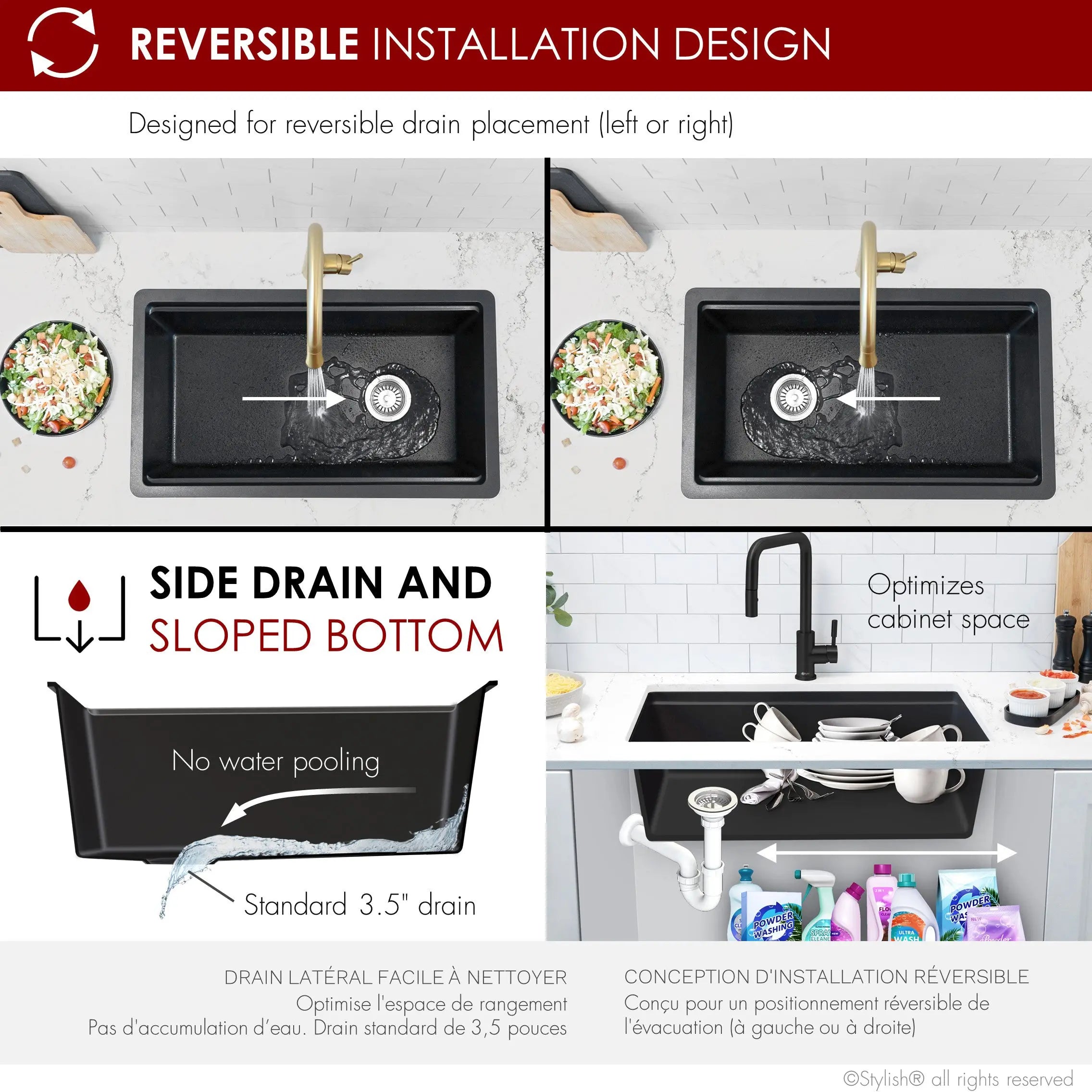 Designed with the ability to flip the sink around to switch whether the drain is on the left or right, giving you the freedom to choose whatever is convenient for your plumbing.