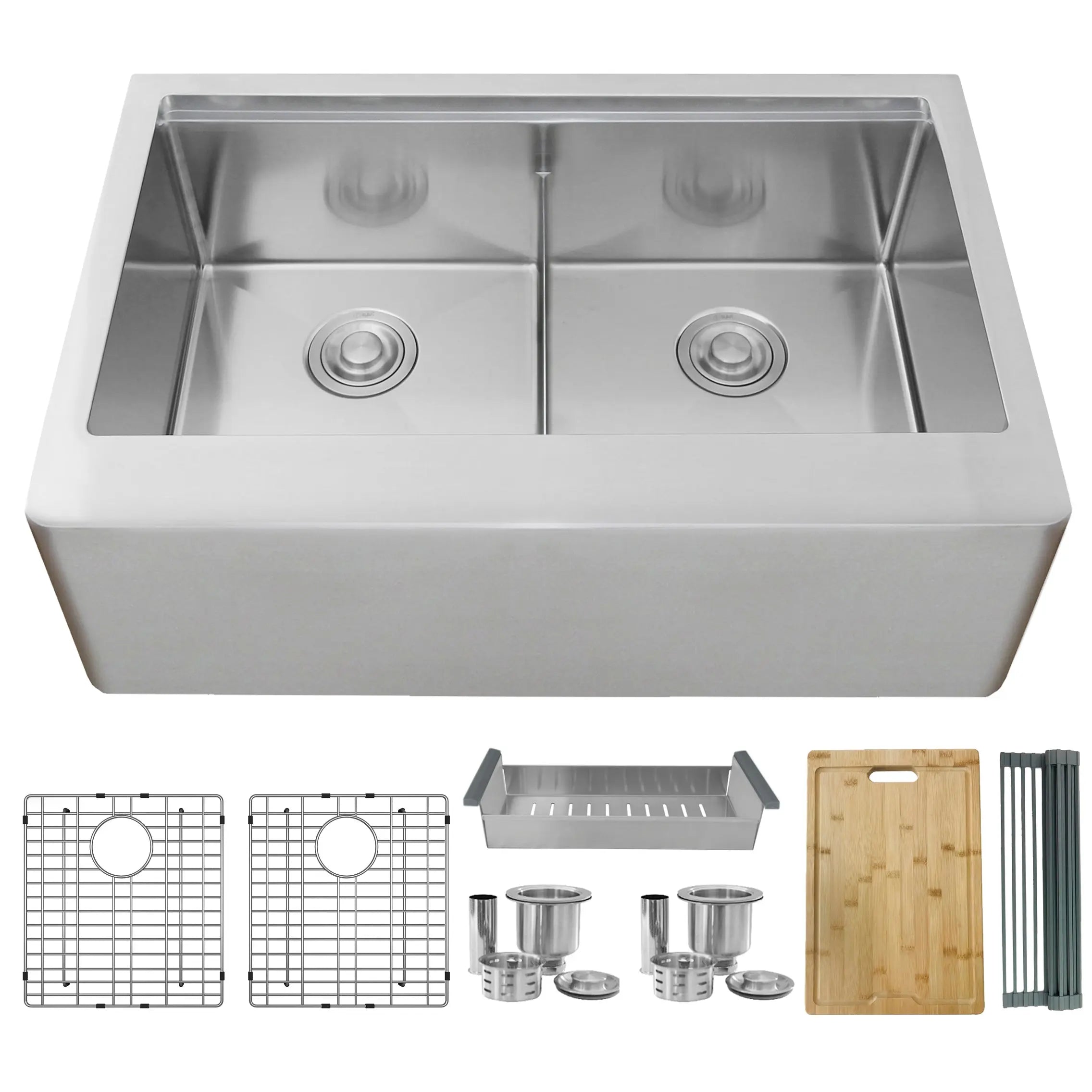 STYLISH 33 inch Farmhouse Double Bowl Stainless Steel Apron Kitchen Sink S-315W - Plumbing Market