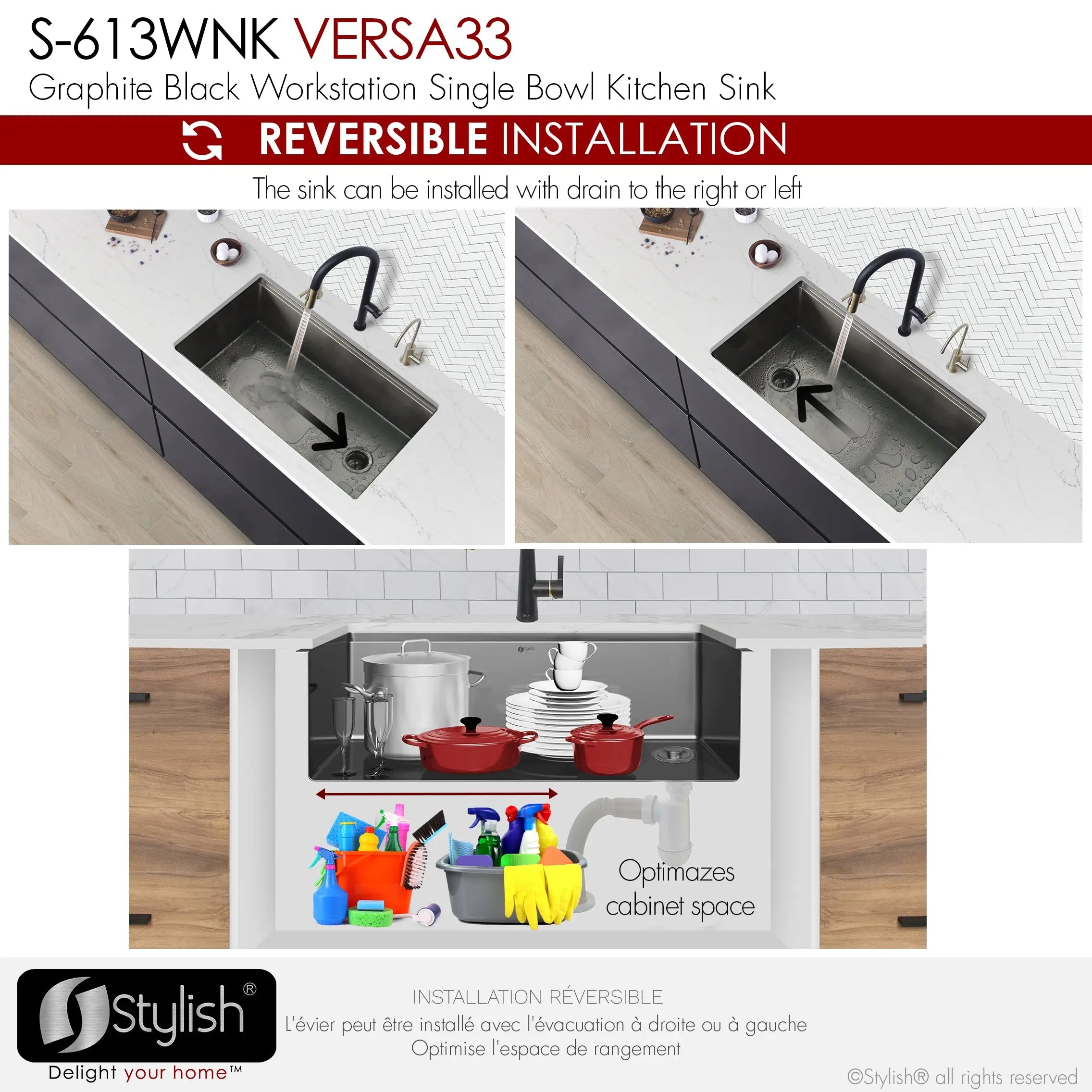 Elevate your culinary experience with the Stylish International Inc. S-613WNK Graphite Black Kitchen Sink.