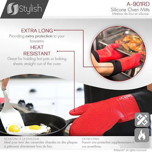 Heat Resistant Silicone Oven Gloves by Stylish® A-901RD