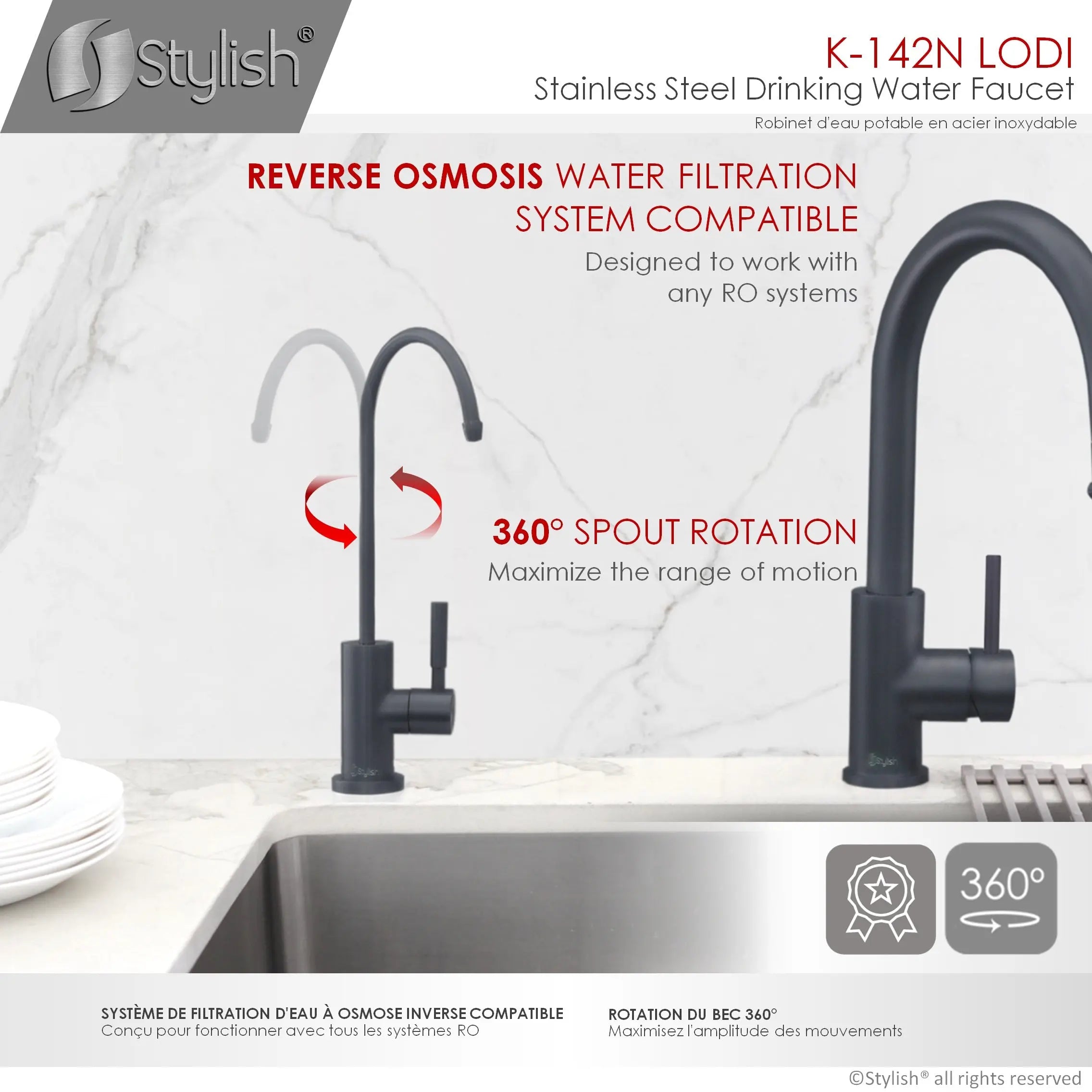 STYLISH Kitchen Sink Drinking Water Tap Faucet, Stainless Steel Matte Black Finish K-142N - Plumbing Market