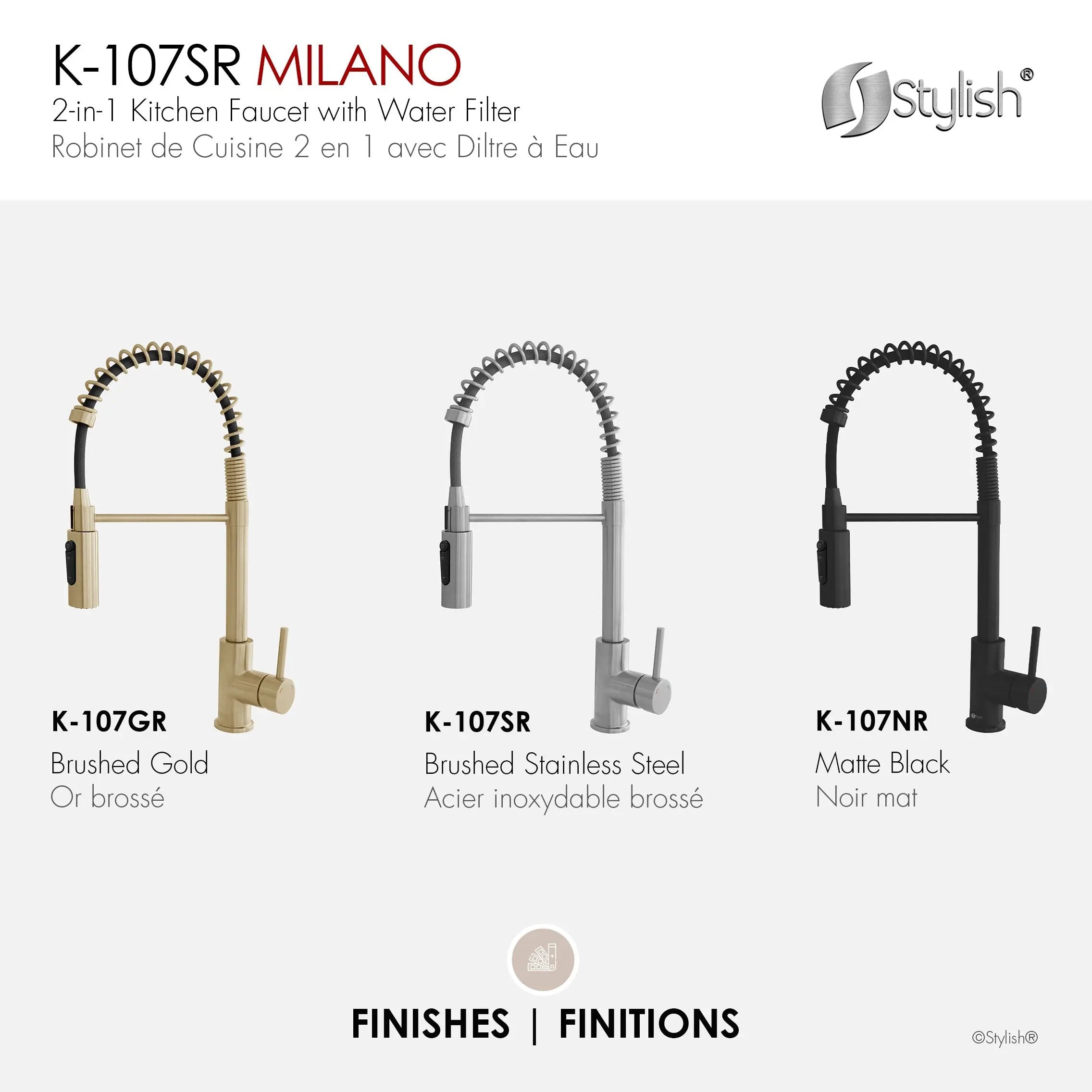 Stylish Milano Pull-Down Kitchen Faucet with water filter. Stainless Steel  Brush. - Plumbing Market