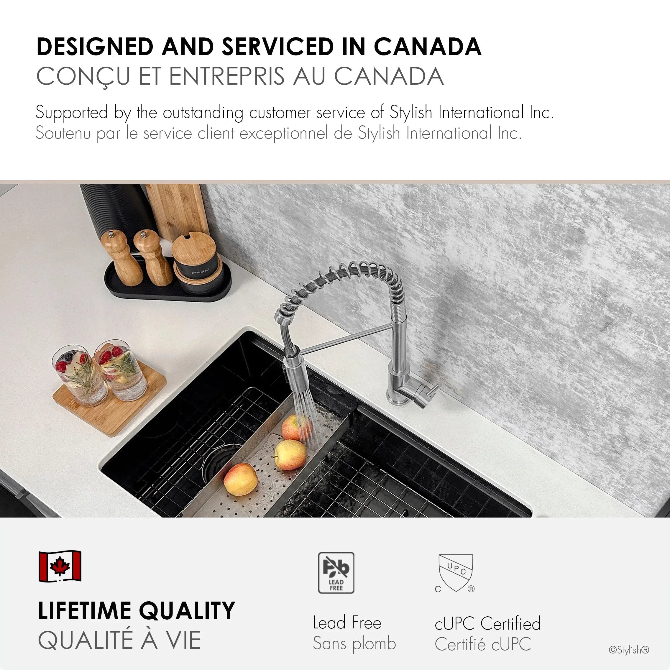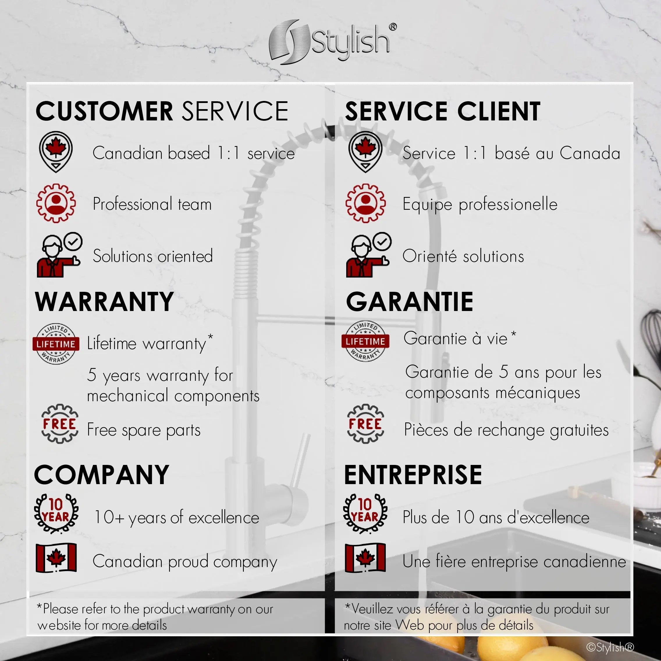 Upgrade your kitchen with this sleek, spring pull-down faucet. Experience the best of both worlds: effortlessly switch between a gentle aerated stream for delicate tasks and a powerful spray for tackling tough messes. Designed for reverse osmosis systems, this faucet ensures you always have access to the purest, most refreshing water – perfect for health-conscious families. Plus, enjoy complete freedom with full regular faucet functionality, even when the filtration system is not in use. Featuring a 360° swivel spout that extends up to 18 inches, this faucet offers incredible reach and flexibility. Crafted from solid brass with stunning spiral details, it's as beautiful as it is functional. Built to last, this faucet boasts a durable ceramic cartridge tested for over 500,000 cycles and an industry-leading slim aerator that conserves water without compromising pressure. Easy to install and compatible with most standard sinks, it comes with stylish braided stainless-steel hoses. Choose from a range of finishes – brushed nickel, chrome, or matte black – to perfectly complement your kitchen's unique style. Experience the difference with this premium faucet that delivers both superior water quality and exceptional performance.