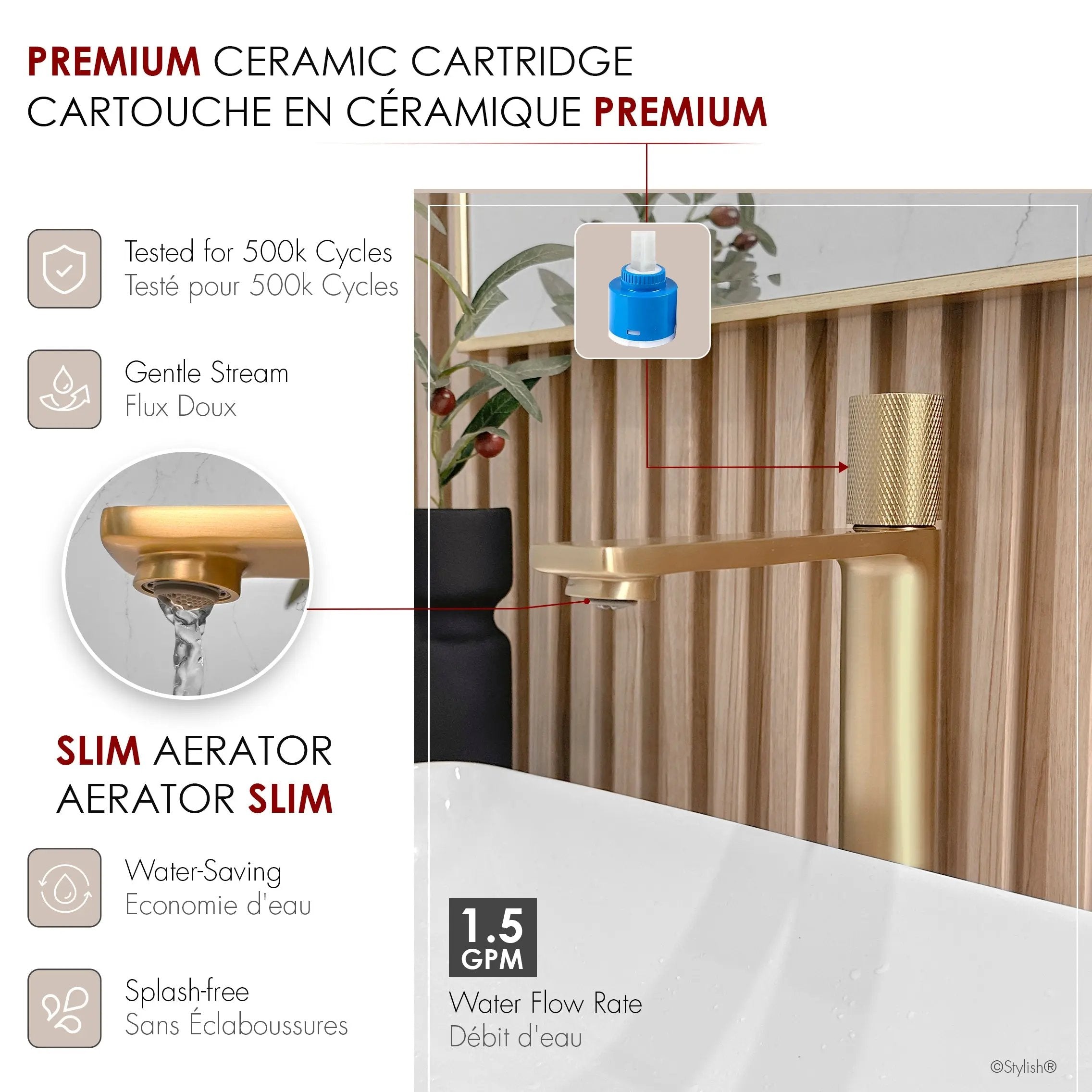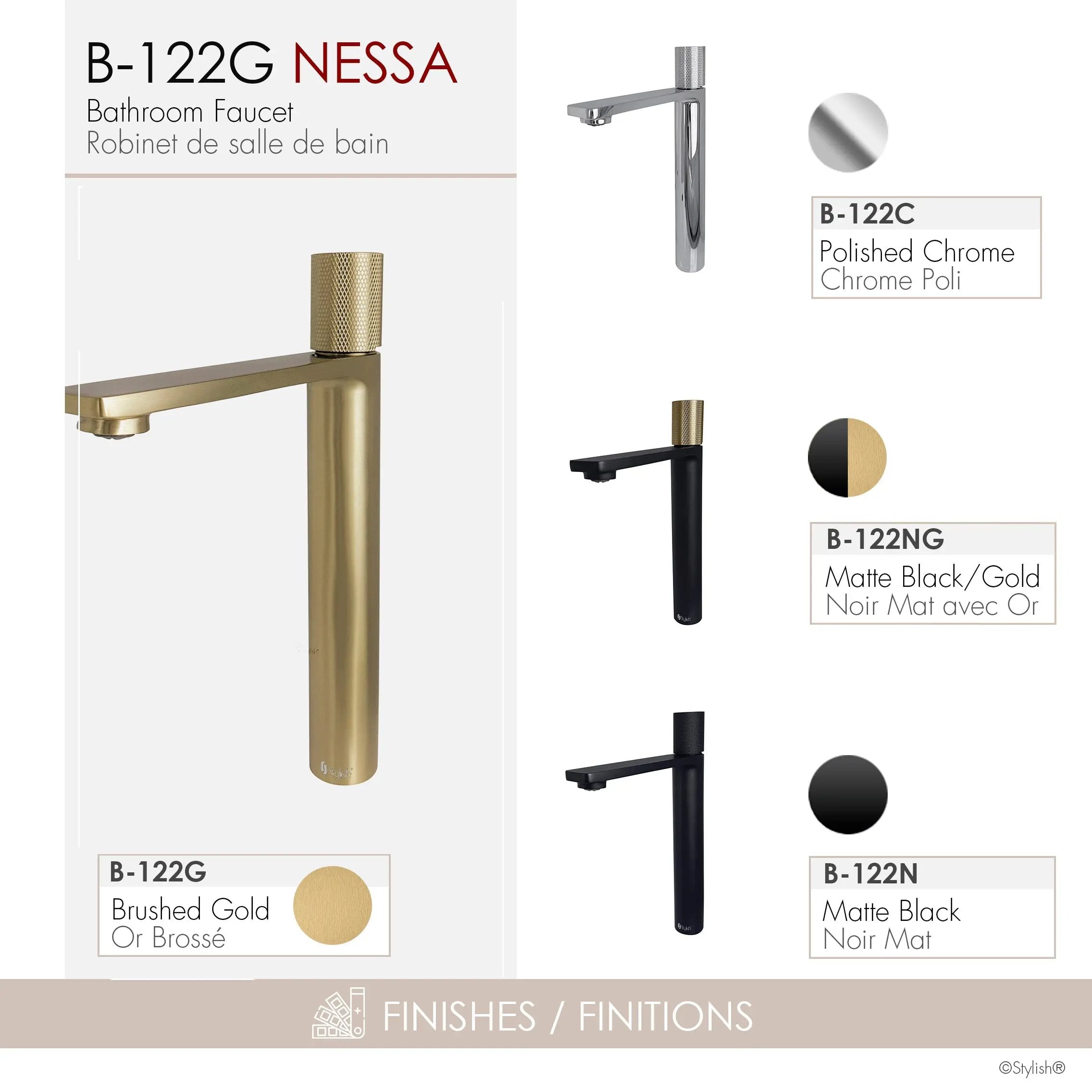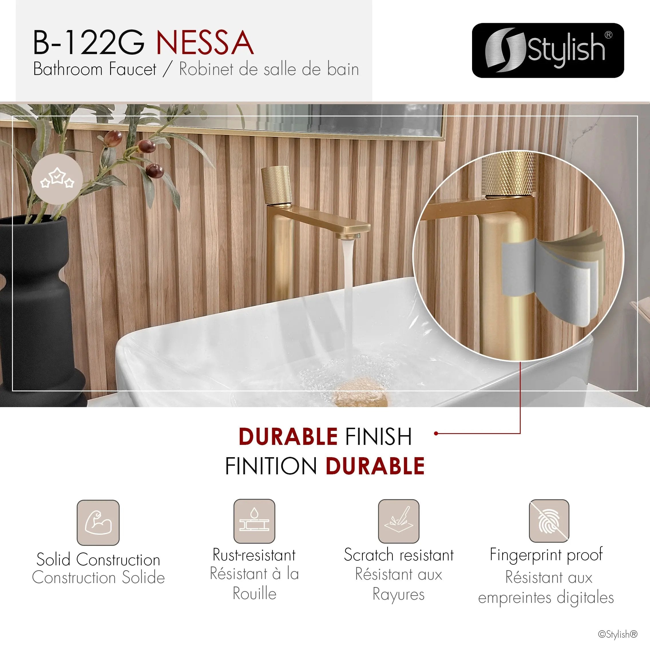 Stylish Nessa Single Handle 12 1/2" Brushed Gold Vessel Bathroom Faucet