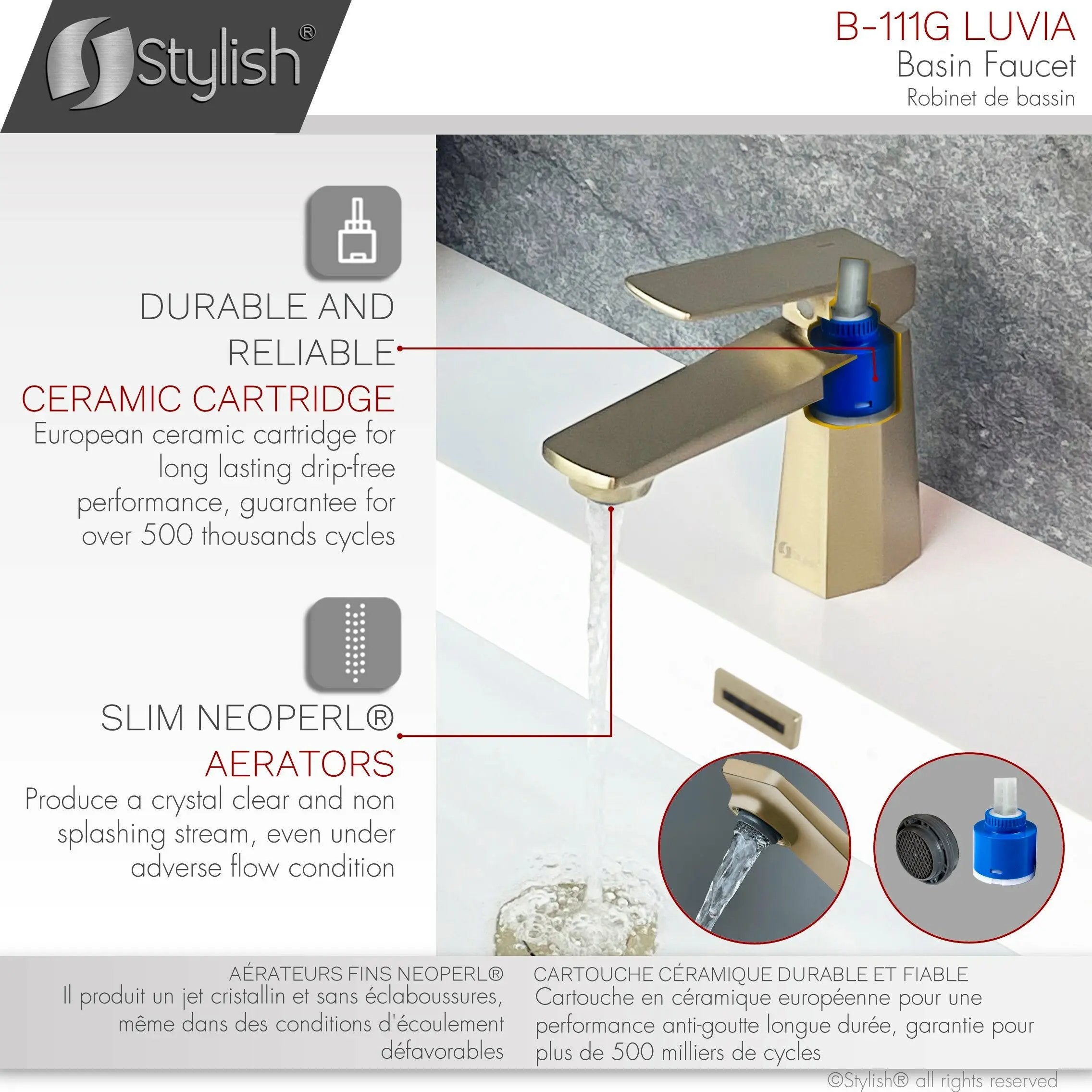 Ceramic disc cartridge lasts over 500,000 cycles. Tested for high water pressure durability.