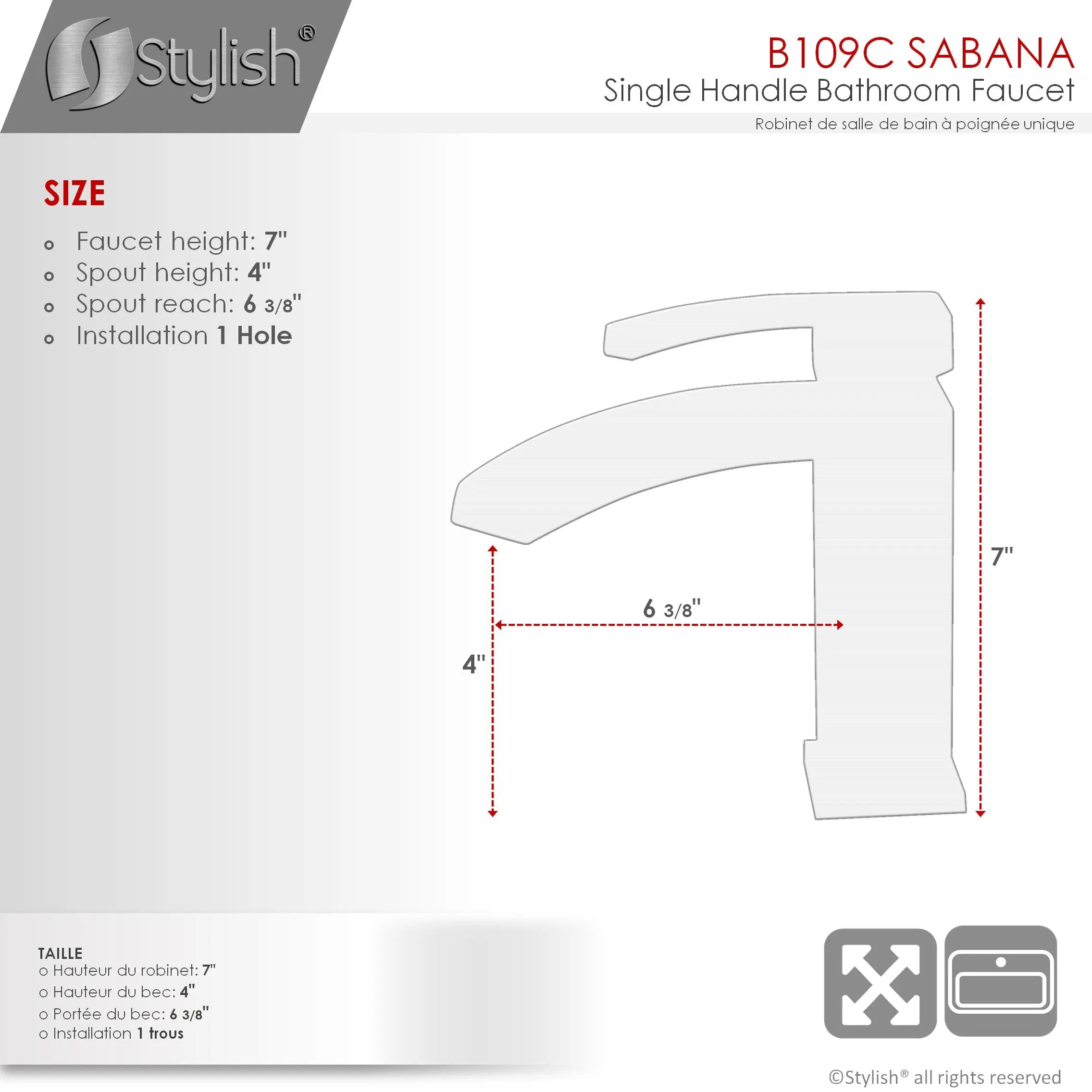 The B-109B Sabana faucet by Stylish® features a handle with an easy-to-use lever, bringing the refined and urbane waterfall faucet from Stylish® into your life for an enhanced bathing experience. Featuring polished chrome, brushed nickel, and matte black finishes and a low spout design for conventional styling. This bathroom sink faucet is made using top-quality components, including a ceramic cartridge for reliable drip-free use and a best-in-industry aerator to reduce water waste without compromising pressure.