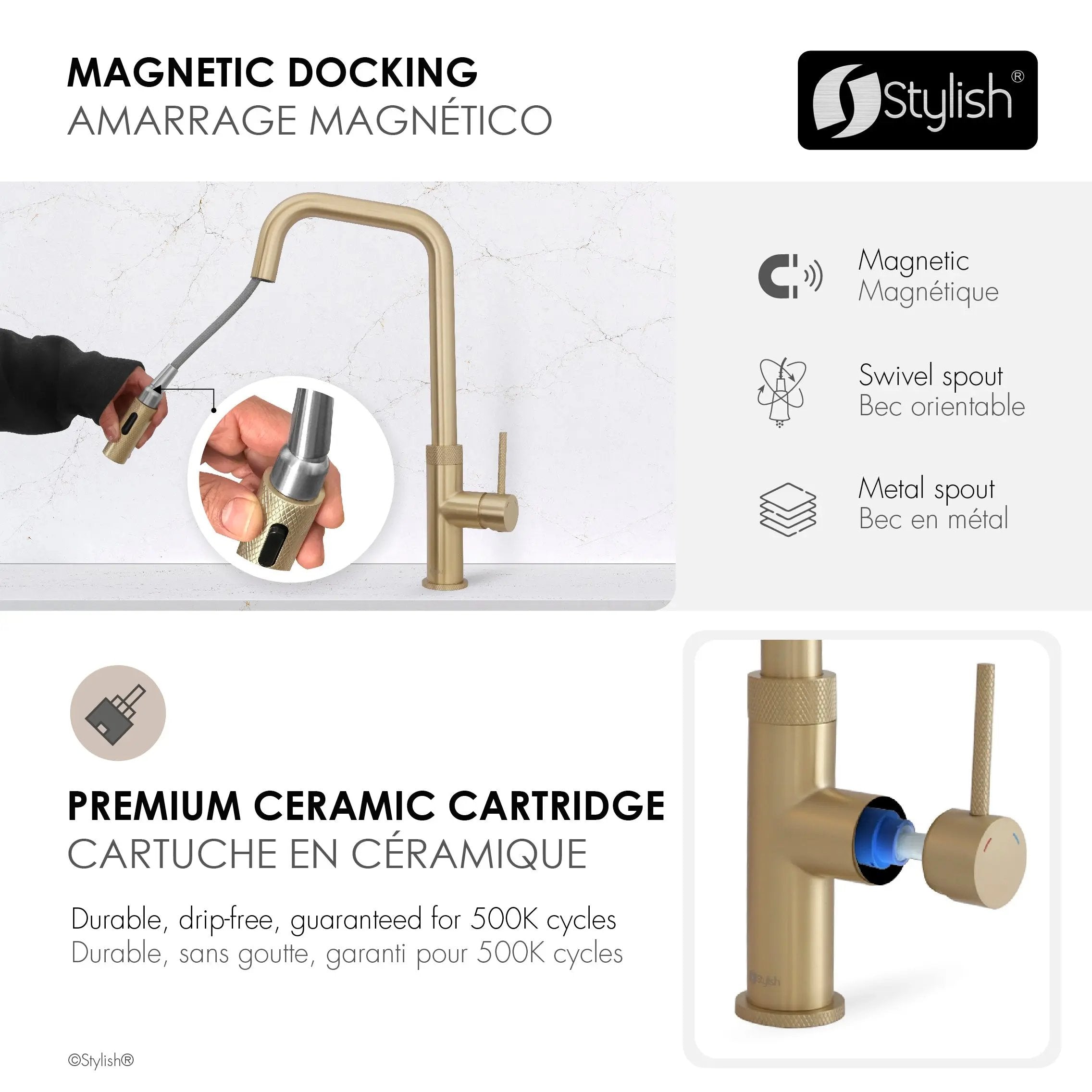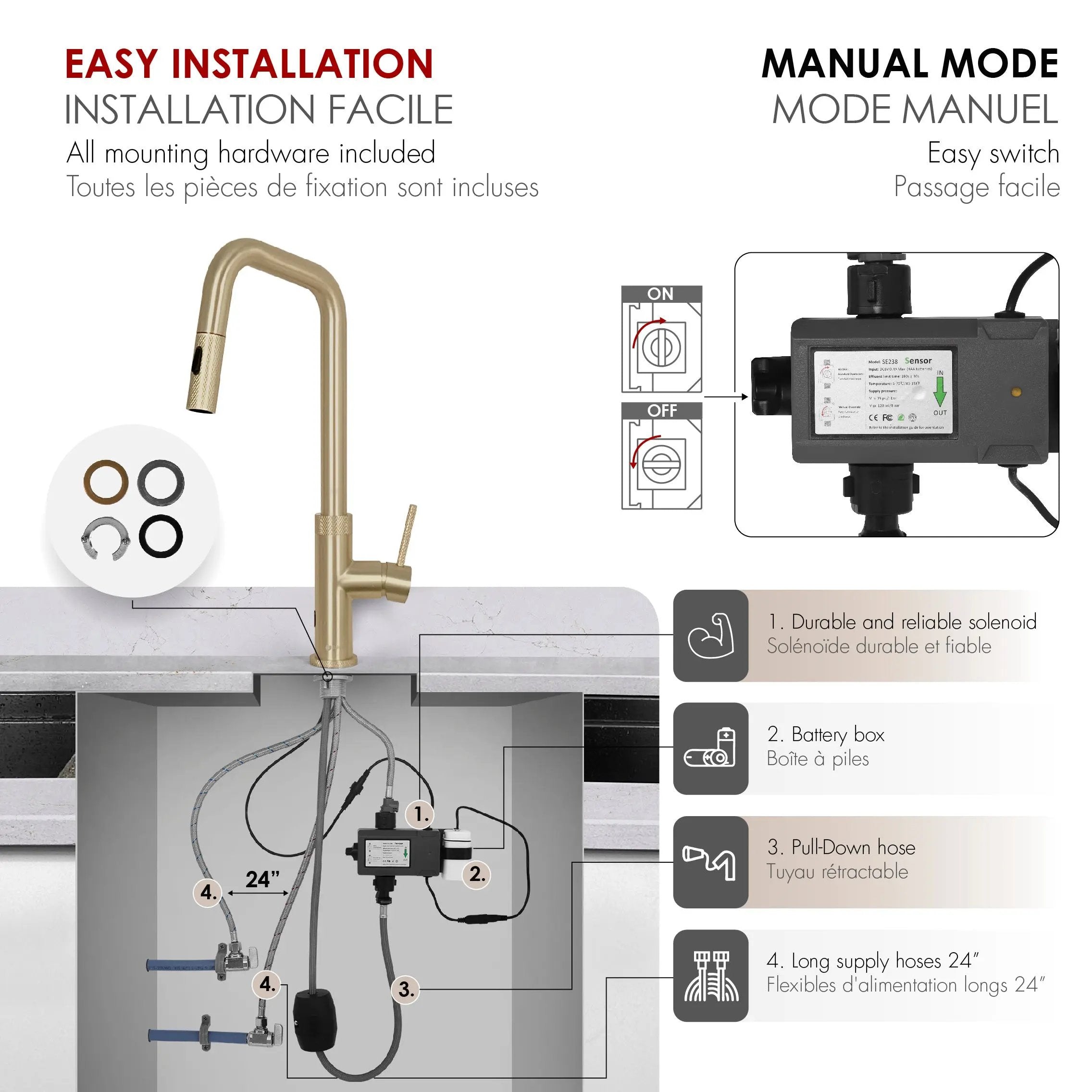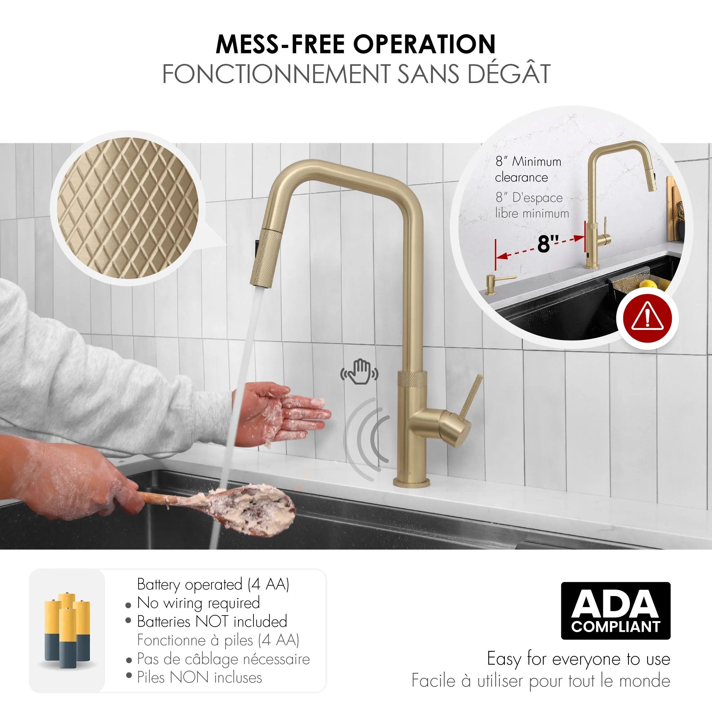 Stylish Single Handle Brushed Gold Pull Down Touchless Kitchen Faucet