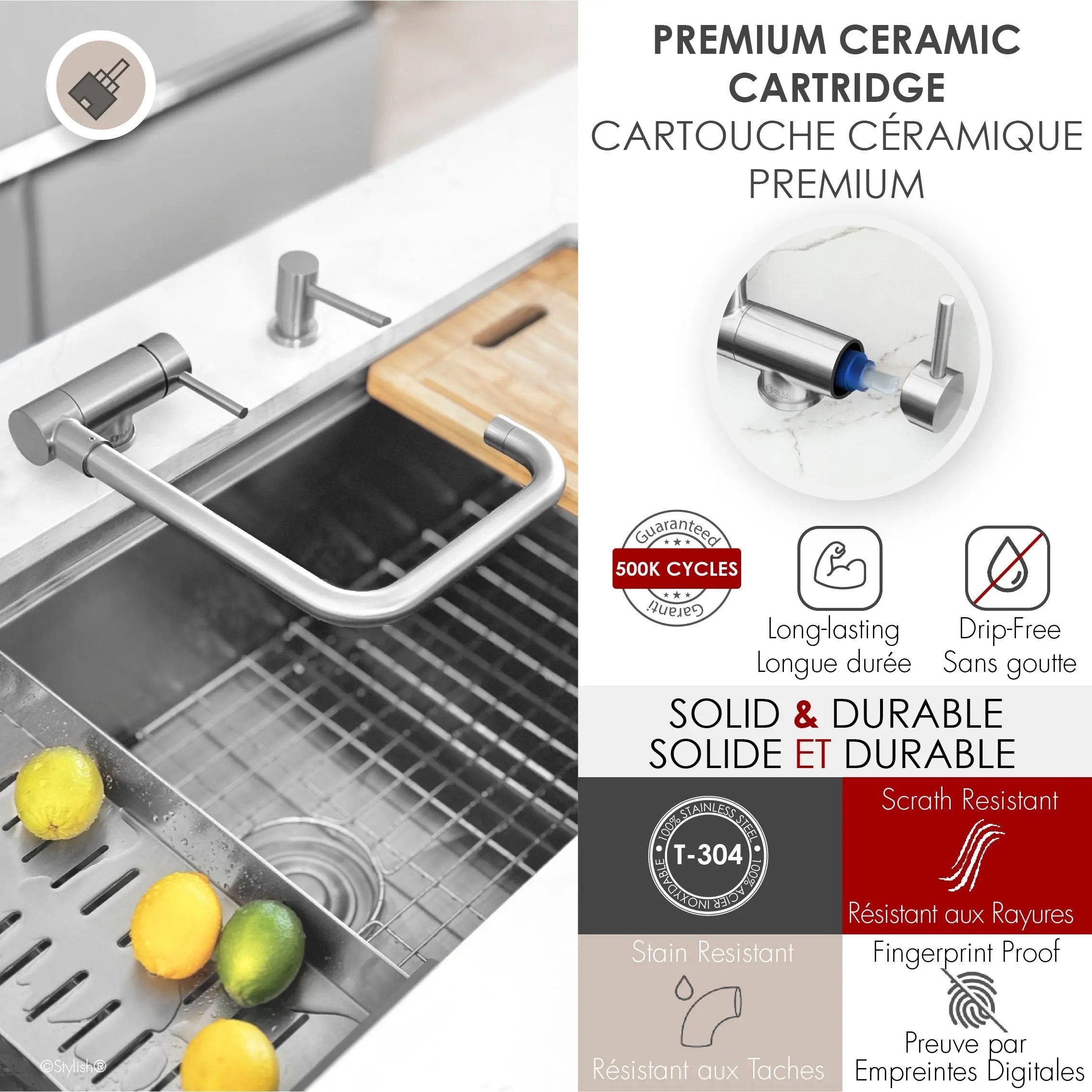 Stylish Single Handle Brushed Stainless Steel Foldable Kitchen Faucet