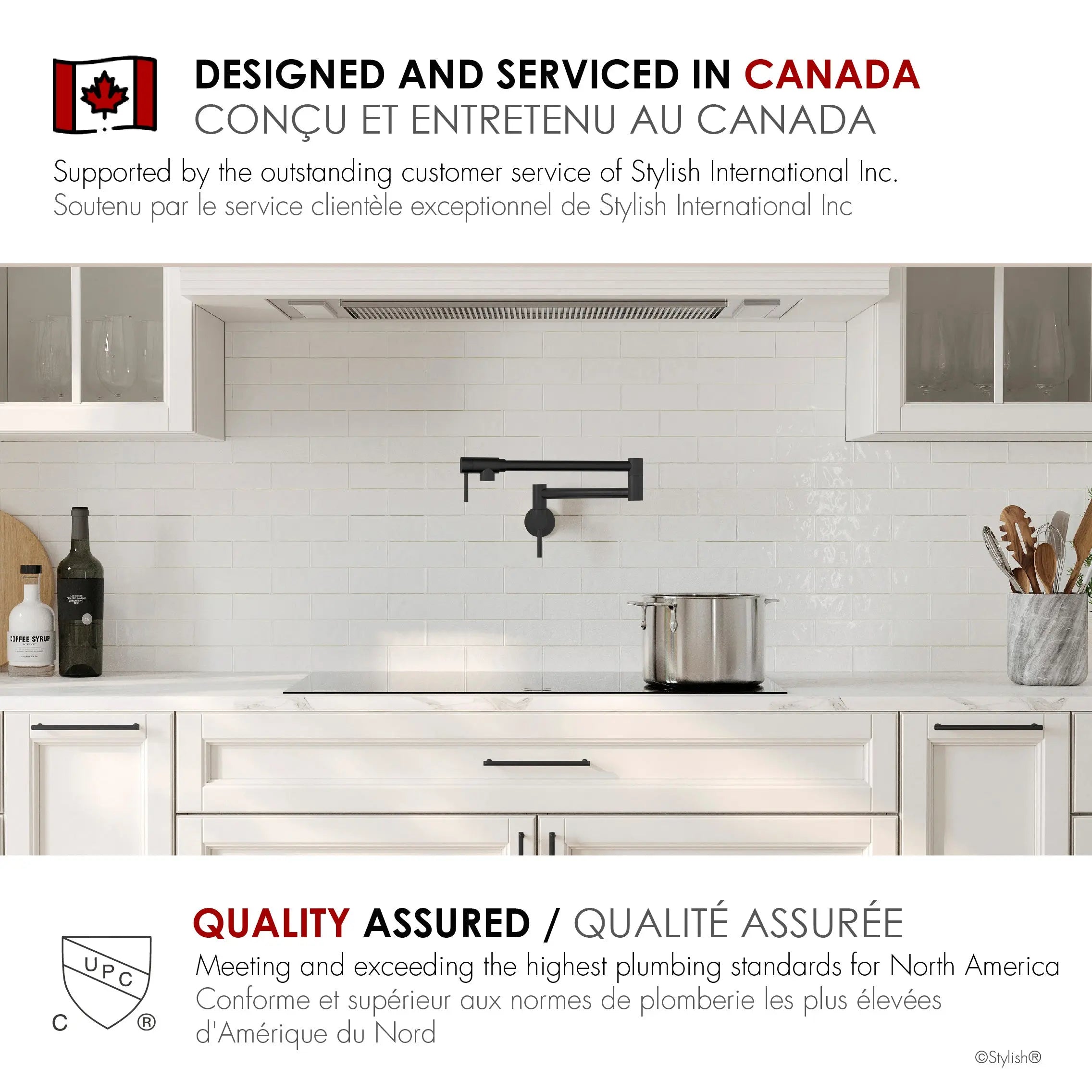 Made from 100% stainless steel, it is engineered to last. This kitchen pot filler faucet is designed to meet the highest plumbing standards in North America. It is extra durable and will not rust or corrode.