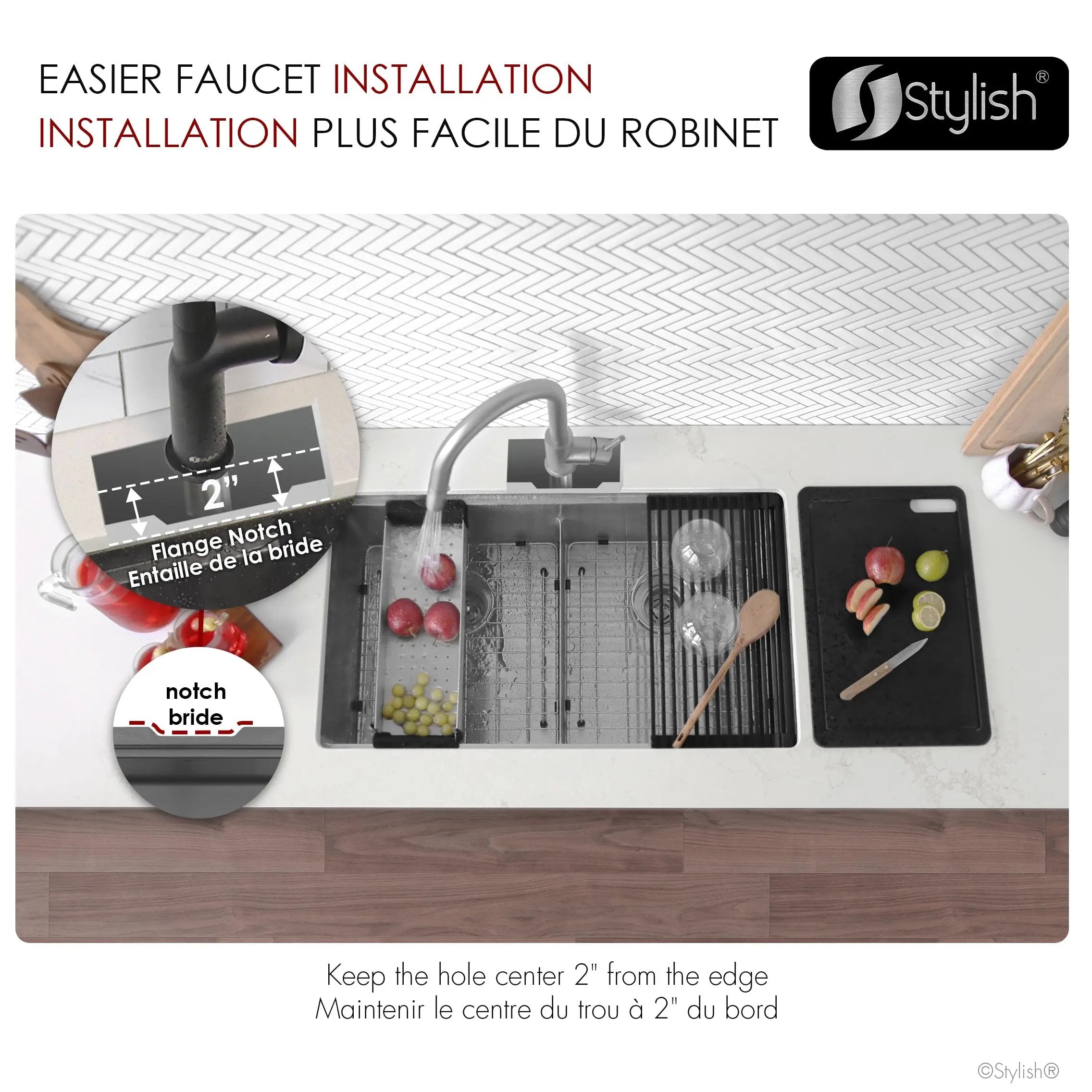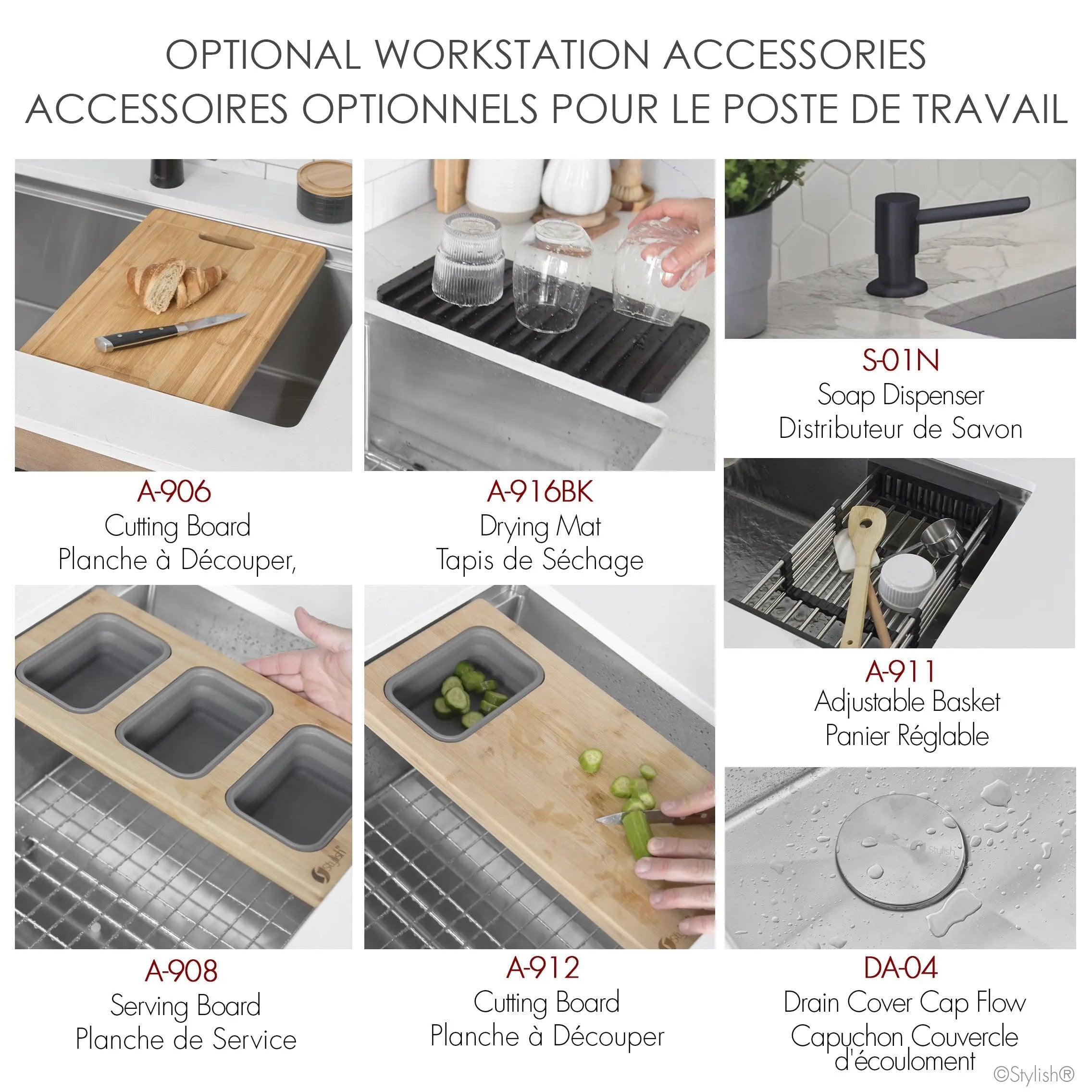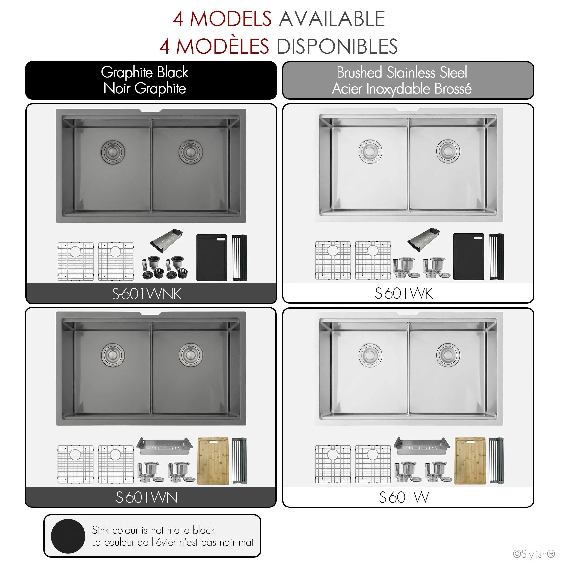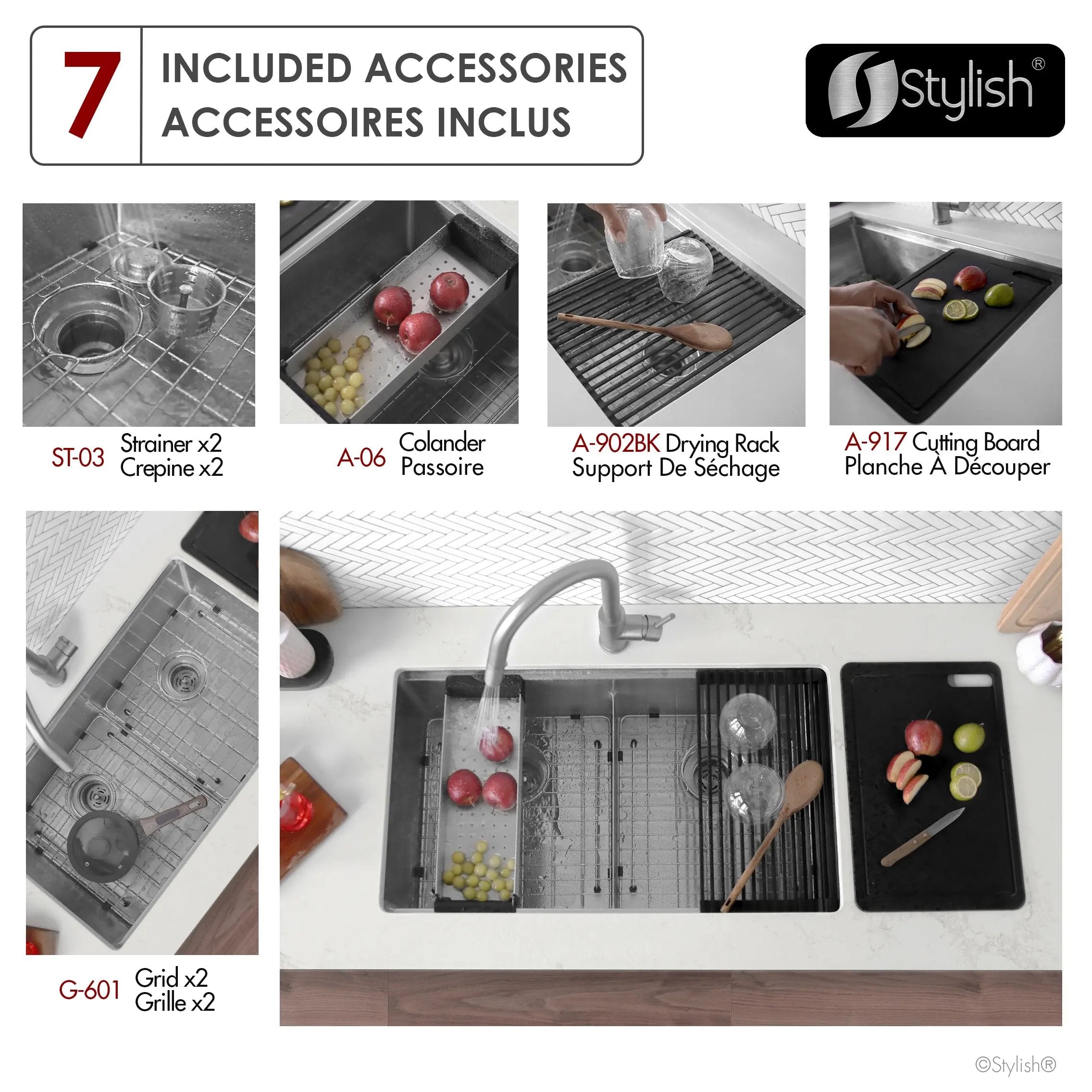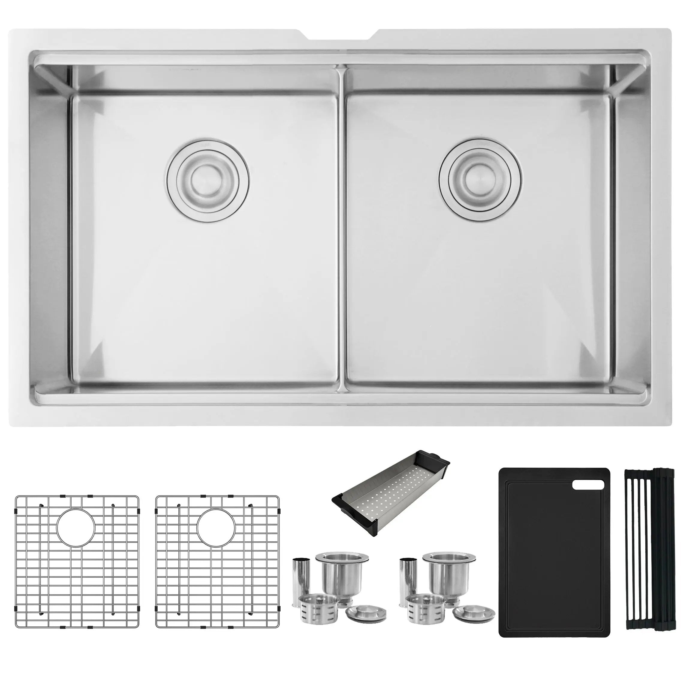 Stylish Undermount 32 inch Stainless Steel Double Bowl Workstation Sink with Black Accesories