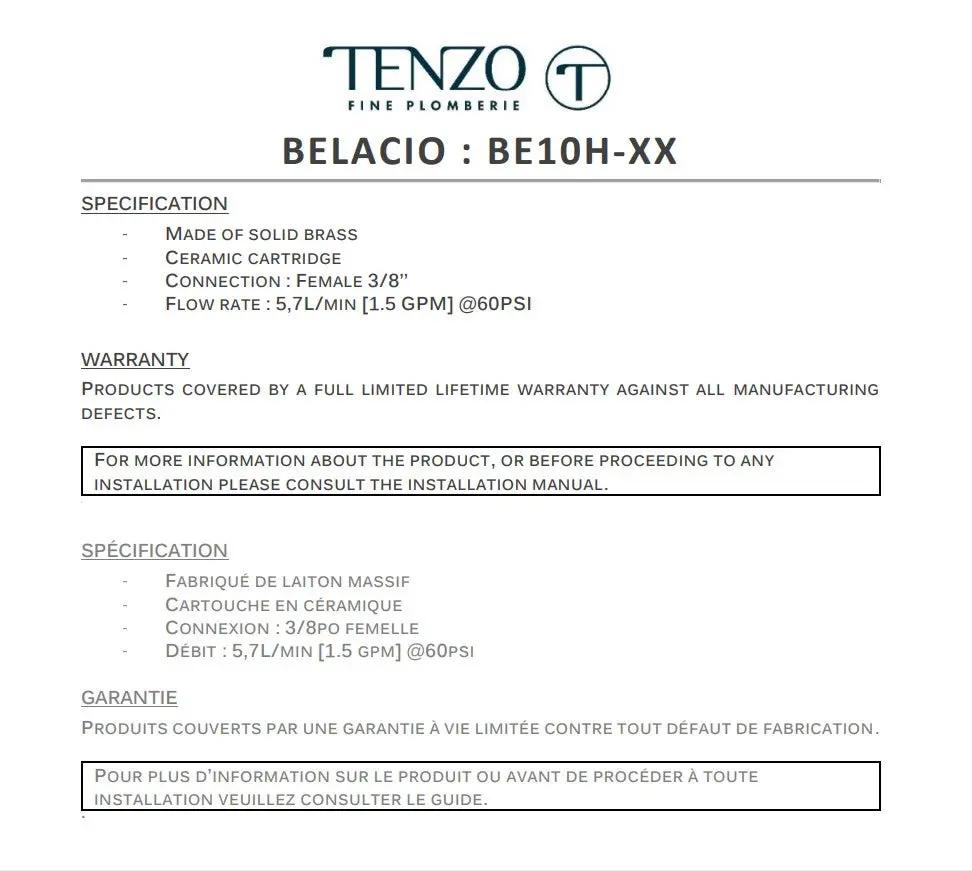 Tenzo Signature Bellacio F Tall Vessel Bathroom Faucet BE10H-F
