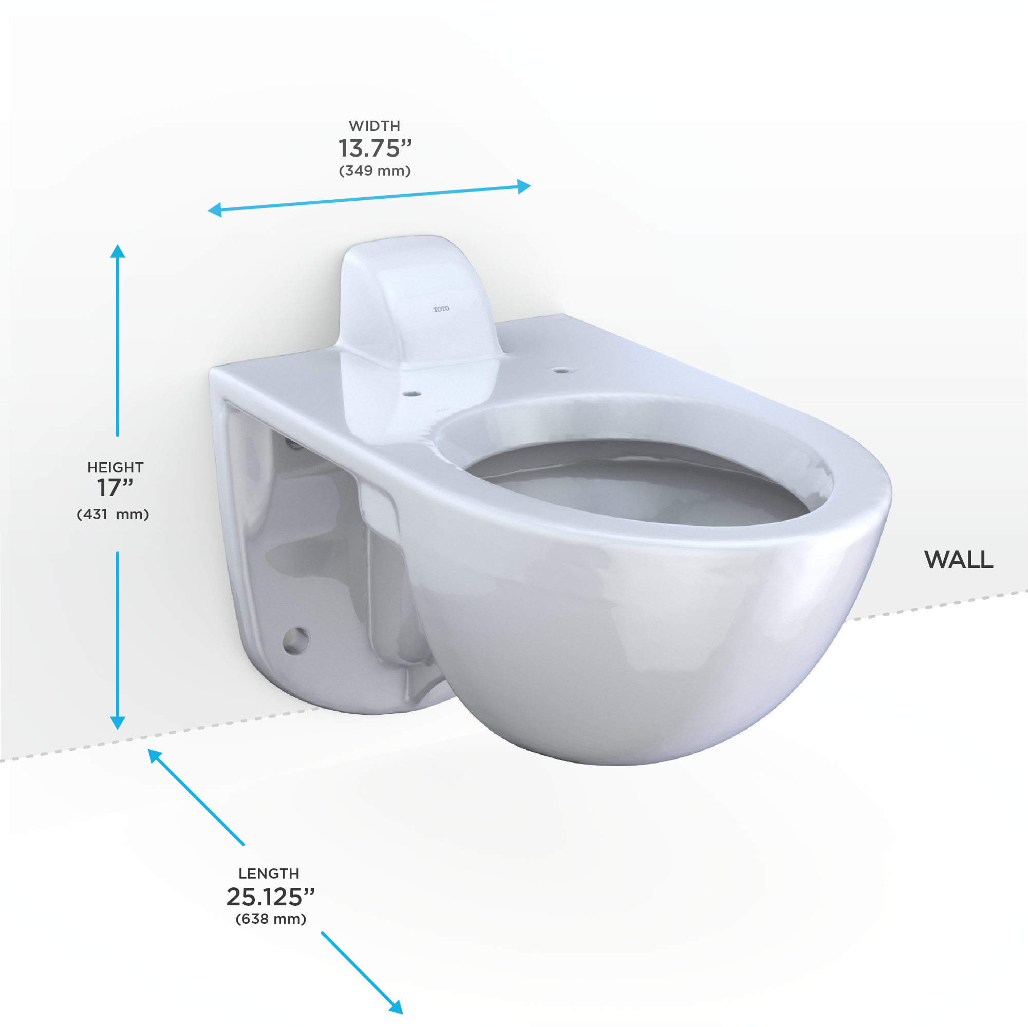 Toto Commercial TORNADO FLUSH Back Spud Wall-Hung Toilet – 1.0/1.28/1.6 GPF, CEFIONTECT