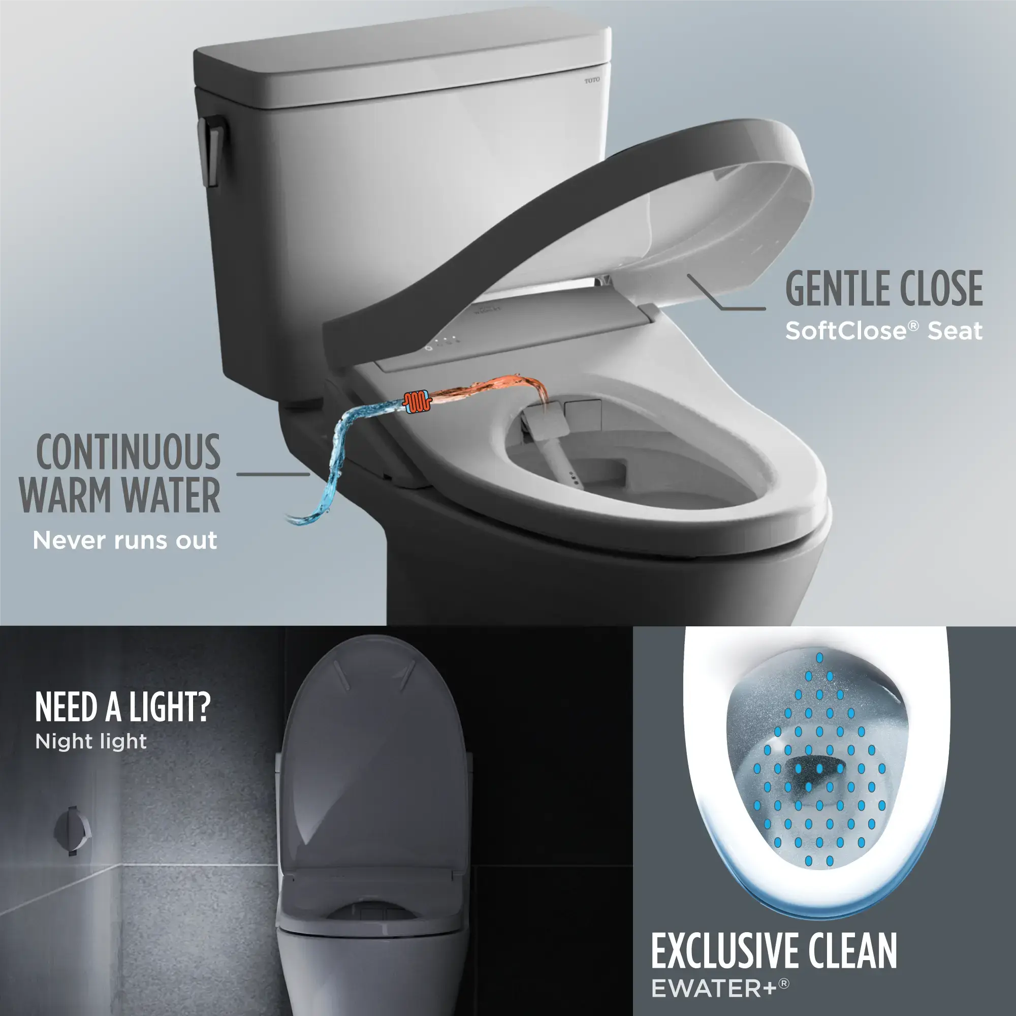 A REFRESHING CLEAN - Gentle yet powerful rear and front warm water cleansing; Adjustable temperature and pressure settings; oscillating and pulsating option creates a refreshing clean every time; WASHLET+ concealed connection for seamless integration