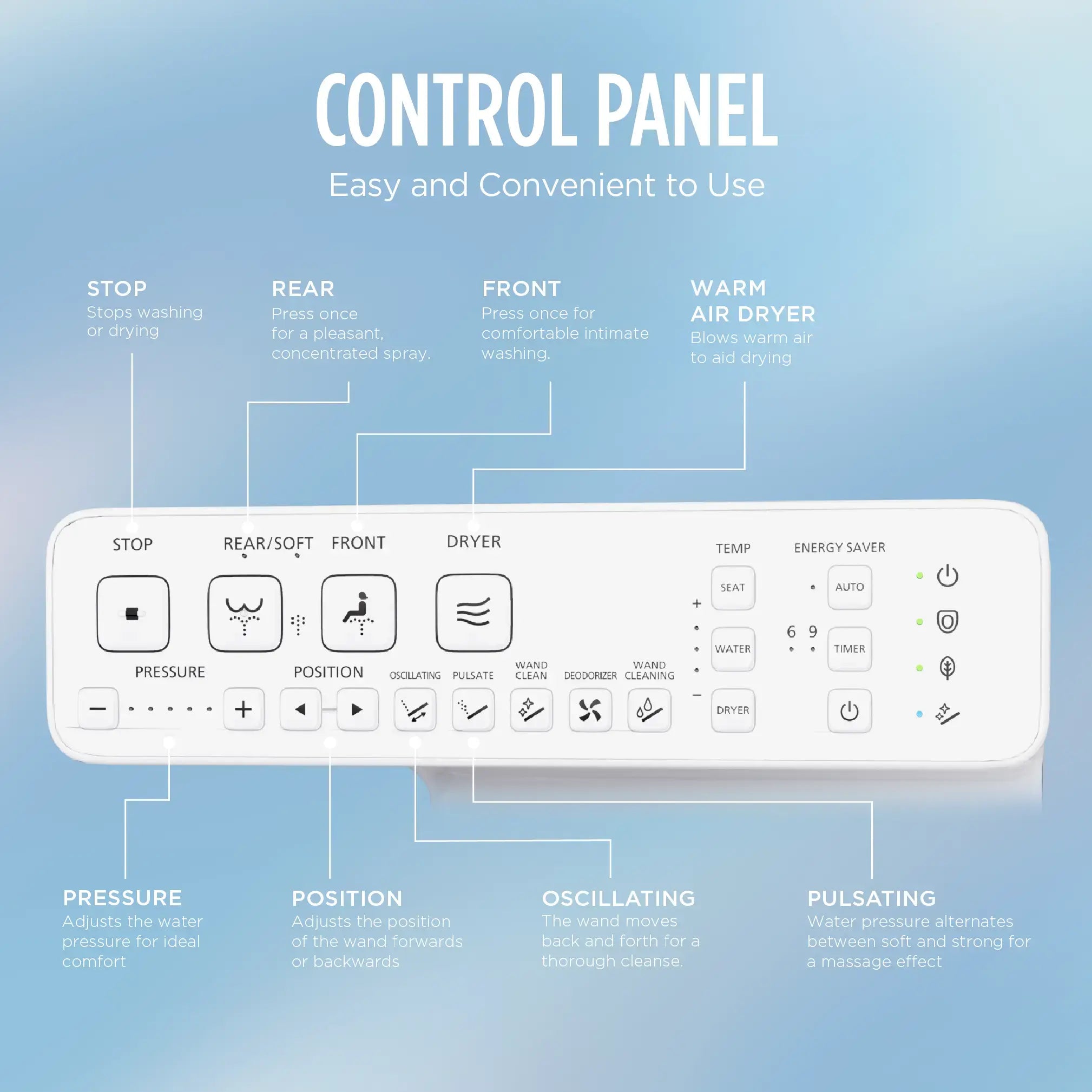 EMBRACE YOUR UNIQUENESS - The convenient side panel allows users to control and set personalized water cleansing settings. Provides luxury and cleanliness at your fingertips