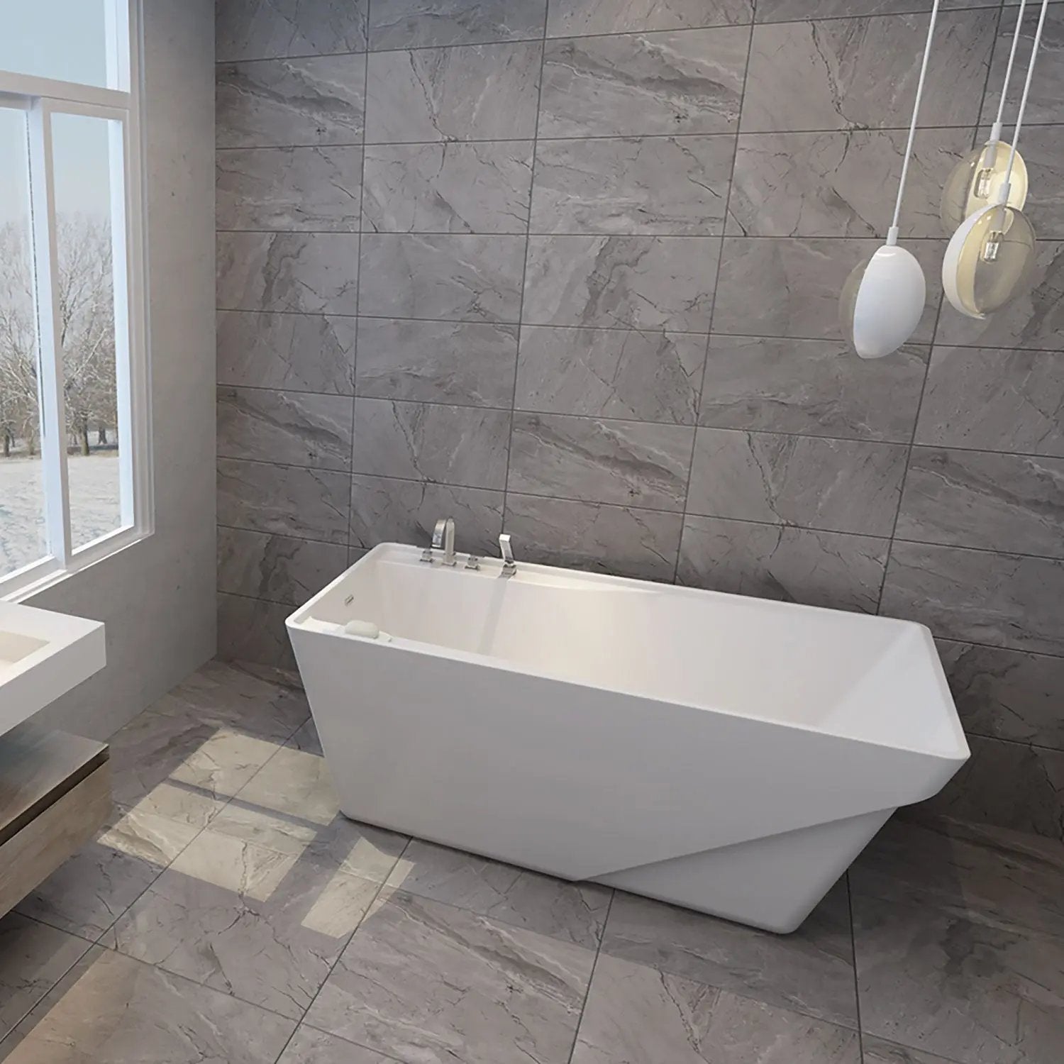Zitta Axer Freestanding Bathtub, 60X32 Inch in Glossy White