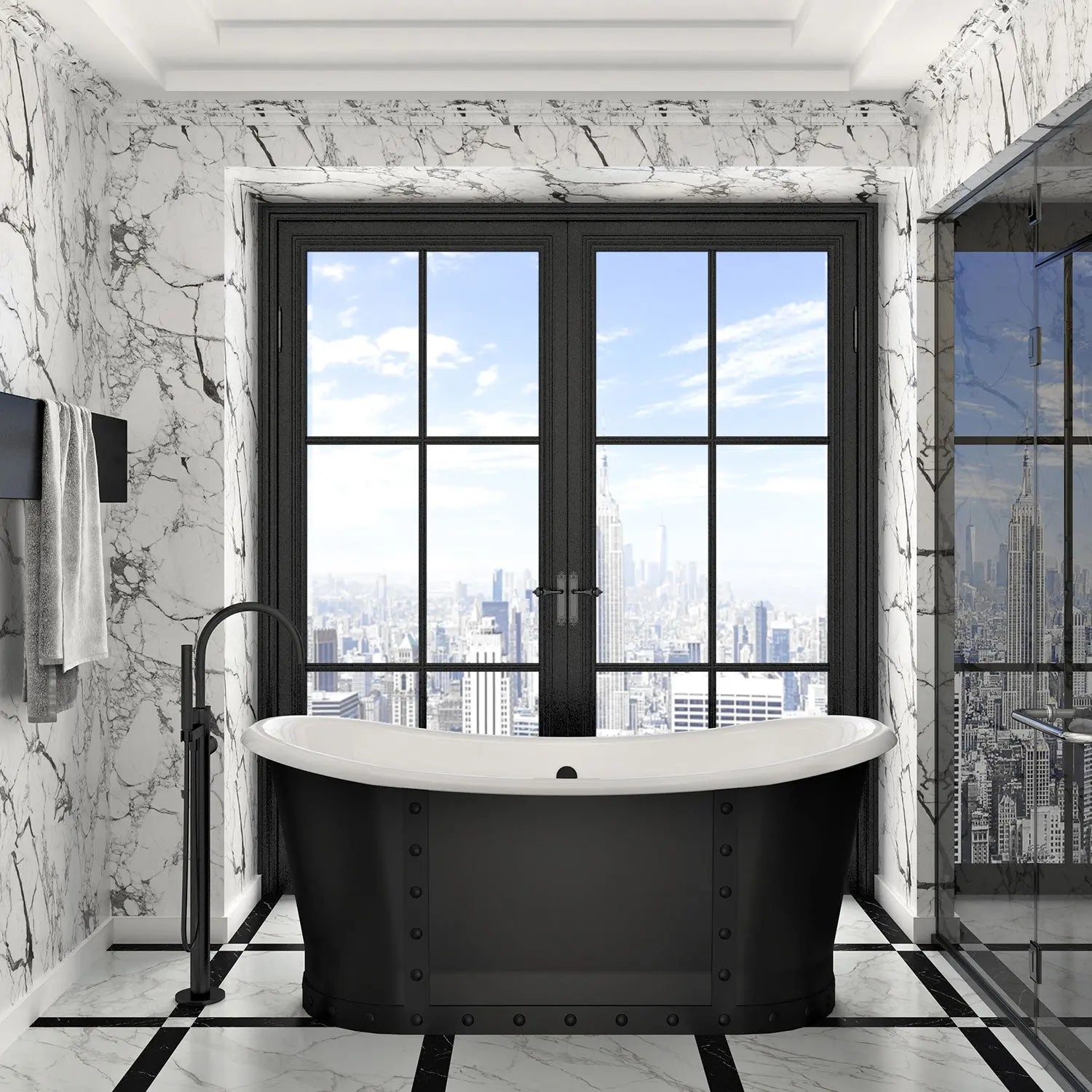 Zitta Bathtub Times freestanding cast iron matte black with rivets finish 67 3/4" x 31" x 28 13/16", enameled cast iron, Slik Portfolio collection TTM6831FI009