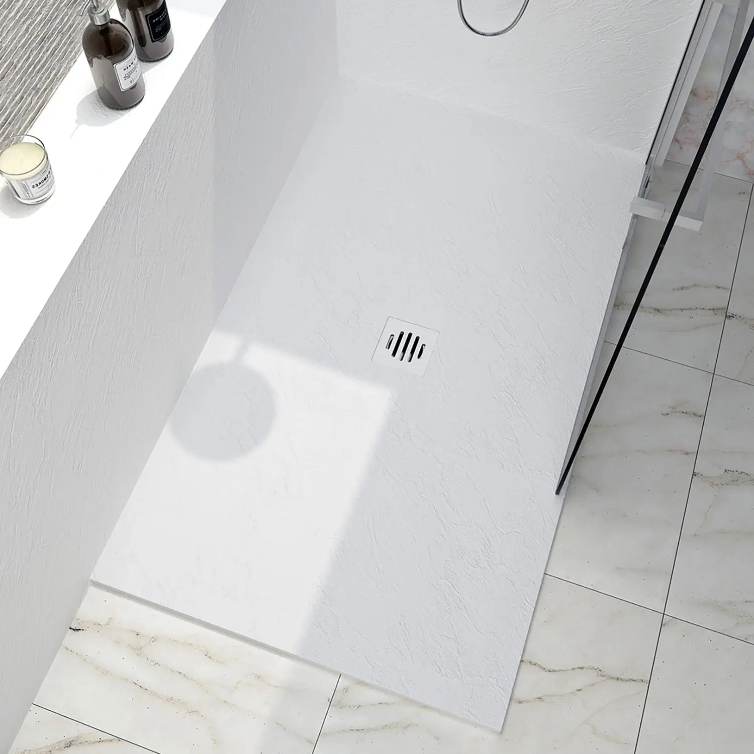 Zitta Shower base Slate 42 x 36, white, in stone powder, wall on the right side, central deco cover, Zitta collection B4236RRET5JRI