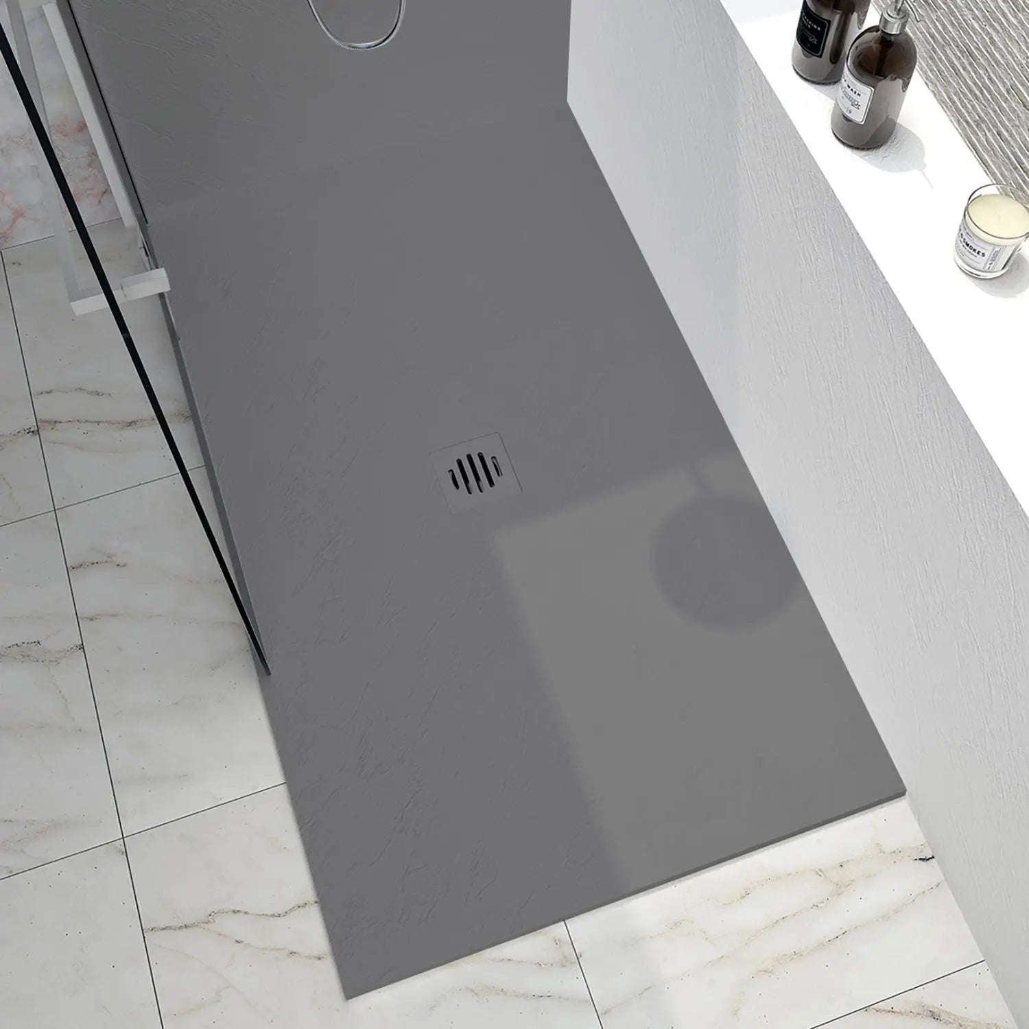 Zitta Shower base Slate 60 x 36, concrete grey, in stone powder, wall at the back, central deco cover, Zitta collection B6036RRET6JWA