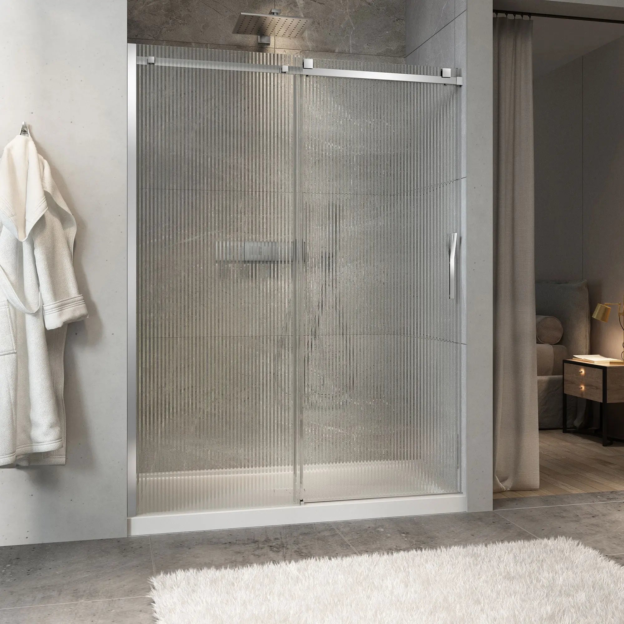 Zitta Shower door Minia alcove, 60", sliding, chrome frame and fluted glass, Zitta collection DMN6000ASTH23